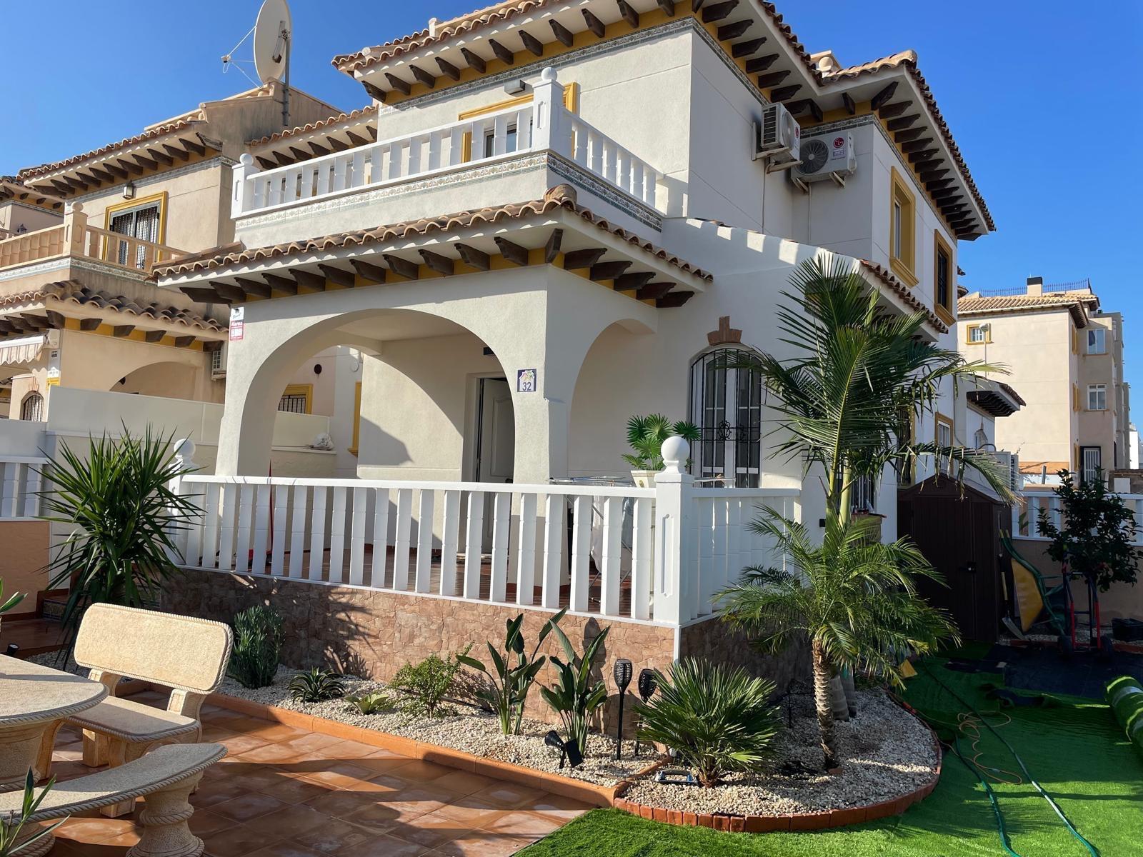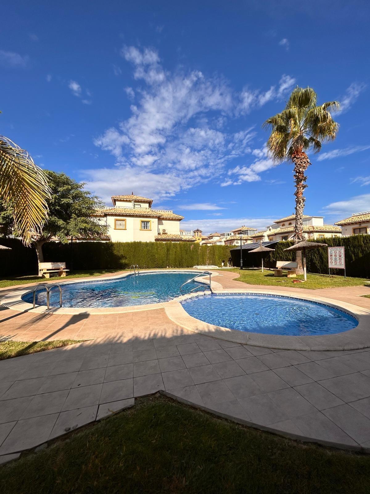 Adosado de 2 dormitorios 2 baños en Cabo Roig Orihuela Costa.~~Descubre esta impresionante villa en esquina situada en una de las zonas más codiciadas de la Costa Blanca – Cabo Roig. Forma parte de una cuidada urbanización con piscina comunitaria, ideal para disfrutar del sol y la tranquilidad durante todo el año.~~La vivienda, distribuida en dos plantas, ha sido completamente reformada con un gusto exquisito. Cuenta con 2 amplios dormitorios, 2 baños y un amueblamiento elegante y con estilo, listo para entrar a vivir.~~Desde la casa y su soleada terraza se pueden contemplar vistas al mar!~~En el exterior, te espera una jardín ornamental de ensueño, perfectamente mantenido gracias a un sistema de riego automático, que rodea la casa y realza su encanto mediterráneo.~