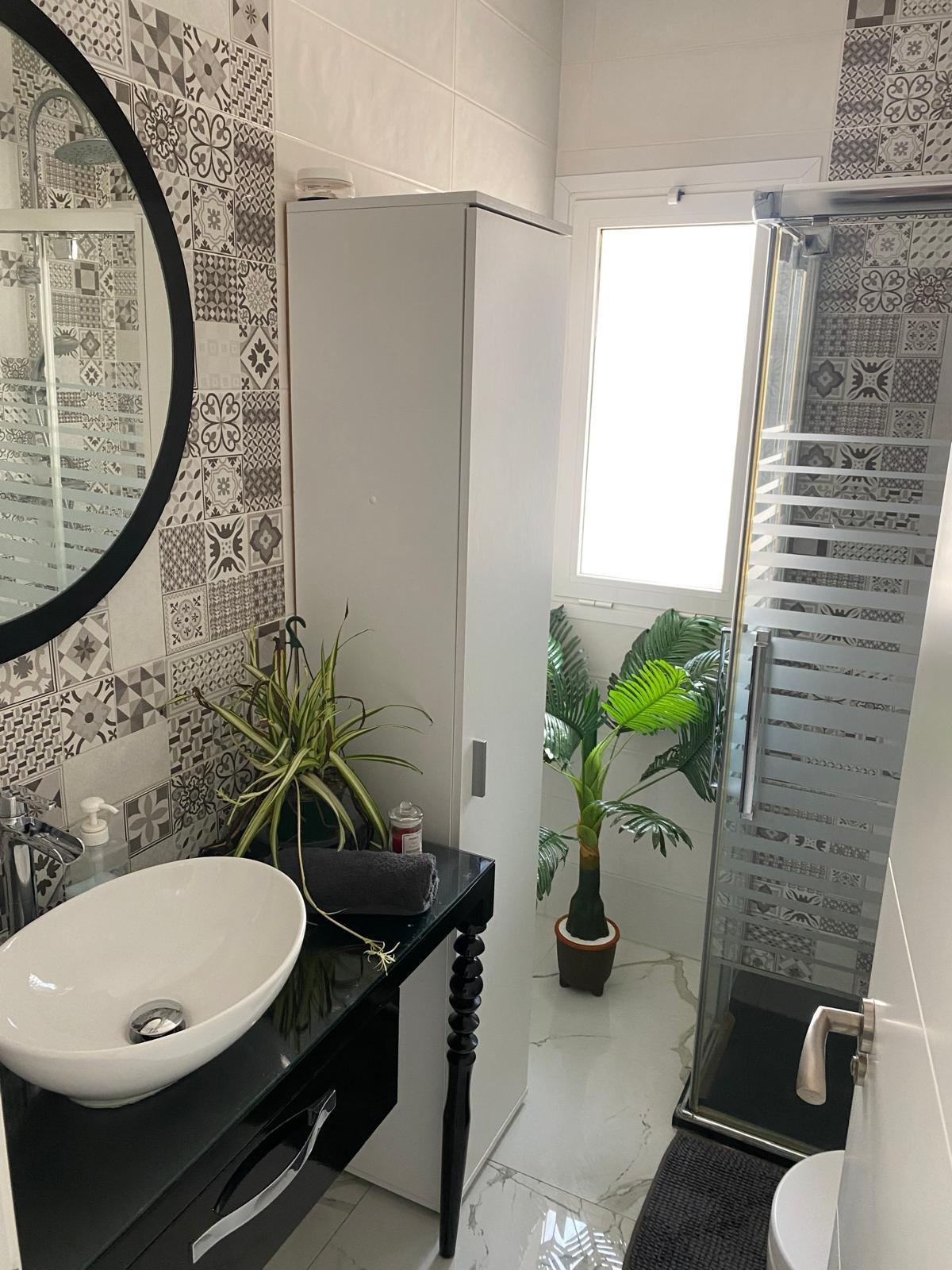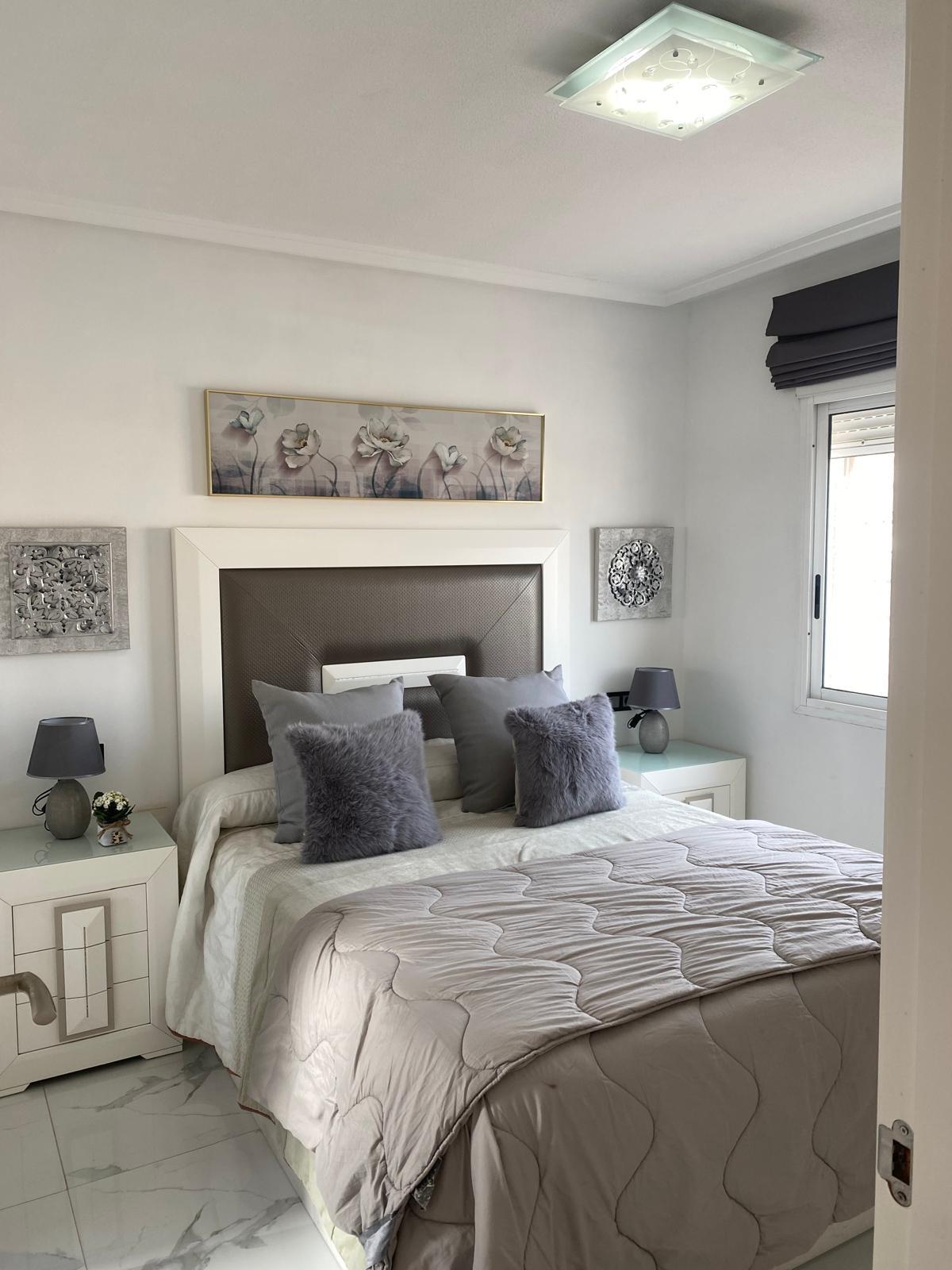 ¡Descubre tu nuevo hogar en Torrevieja! Este encantador chalet adosado en la codiciada zona de Aguas Nuevas te ofrece una vida de comodidad y estilo a solo 1000 metros de la playa. Con 200 m² de superficie construida, esta propiedad reformada cuenta con una habitación doble y dos sencillas en la planta baja, ideales para familias o para recibir invitados. Disfruta de la luz natural que inunda cada rincón gracias a su orientación este, mientras te relajas en el balcón o en la amplia terraza.~~La casa está equipada con todas las comodidades modernas: aire acondicionado, calefacción por bomba de frío/calor, armarios empotrados y una cocina completamente equipada. Además, podrás disfrutar de un baño en suite y un solárium perfecto para esos días soleados. La comunidad ofrece una piscina para refrescarte en verano y zonas infantiles para los más pequeños.~~Ubicada en una urbanización tranquila, tendrás a tu disposición todos los servicios necesarios: autobuses, centros comerciales, colegios y más. Con vistas despejadas y un jardín privado, esta propiedad es un oasis de tranquilidad. Incluye plaza de garaje y trastero, todo por unos gastos de comunidad de solo 132 euros al mes. ¡No pierdas la oportunidad de vivir en este maravilloso chalet!~