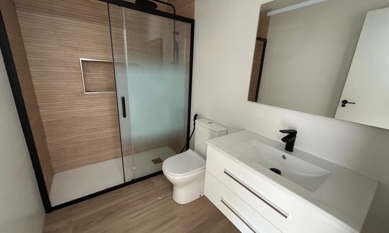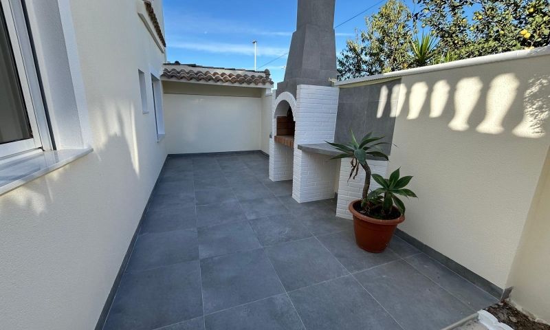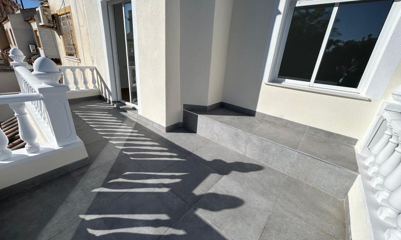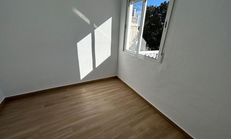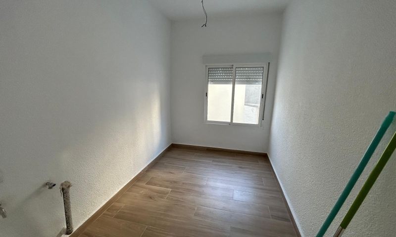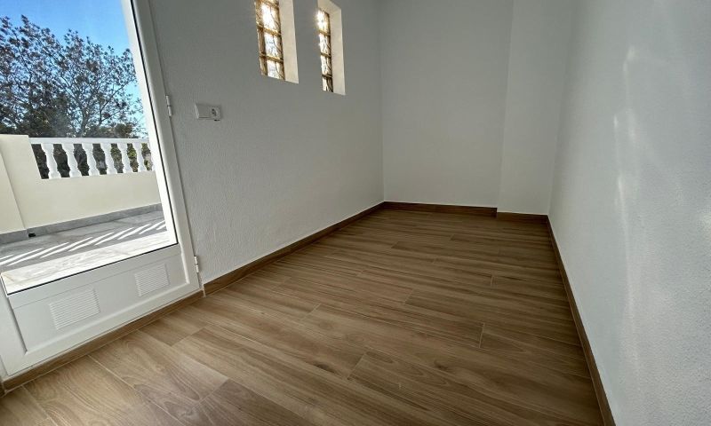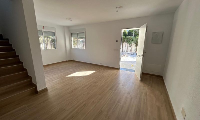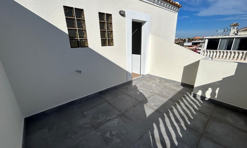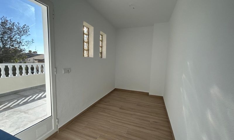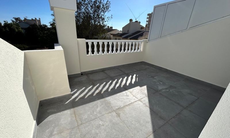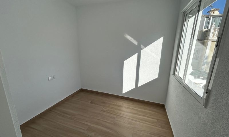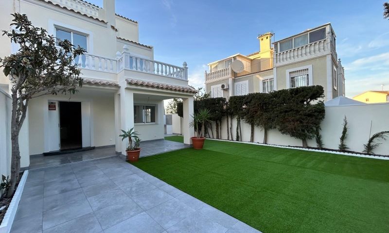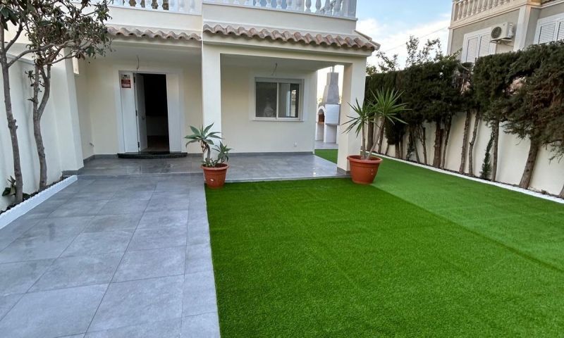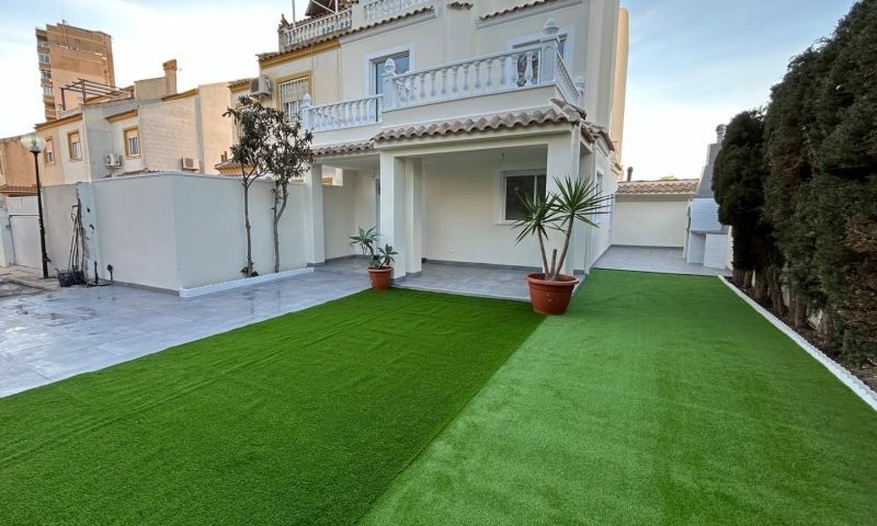 Adosado totalmente reformado en Aguas Nuevas (Torrevieja).Situado en una de las mejores zonas de Torrevieja, cerca de todo tipo de servicios tanto de restauración como de colegios y también de la red de transporte público.La vivienda está compuesta por 3 Dormitorios, habitación extra en solárium, 2 Baños y Lavandería.140m2 de vivienda más su parcela exterior de 130m2 donde tiene una barbacoa de obra.Dispone de Orientación Sur y cuenta con piscina comunitaria. ~