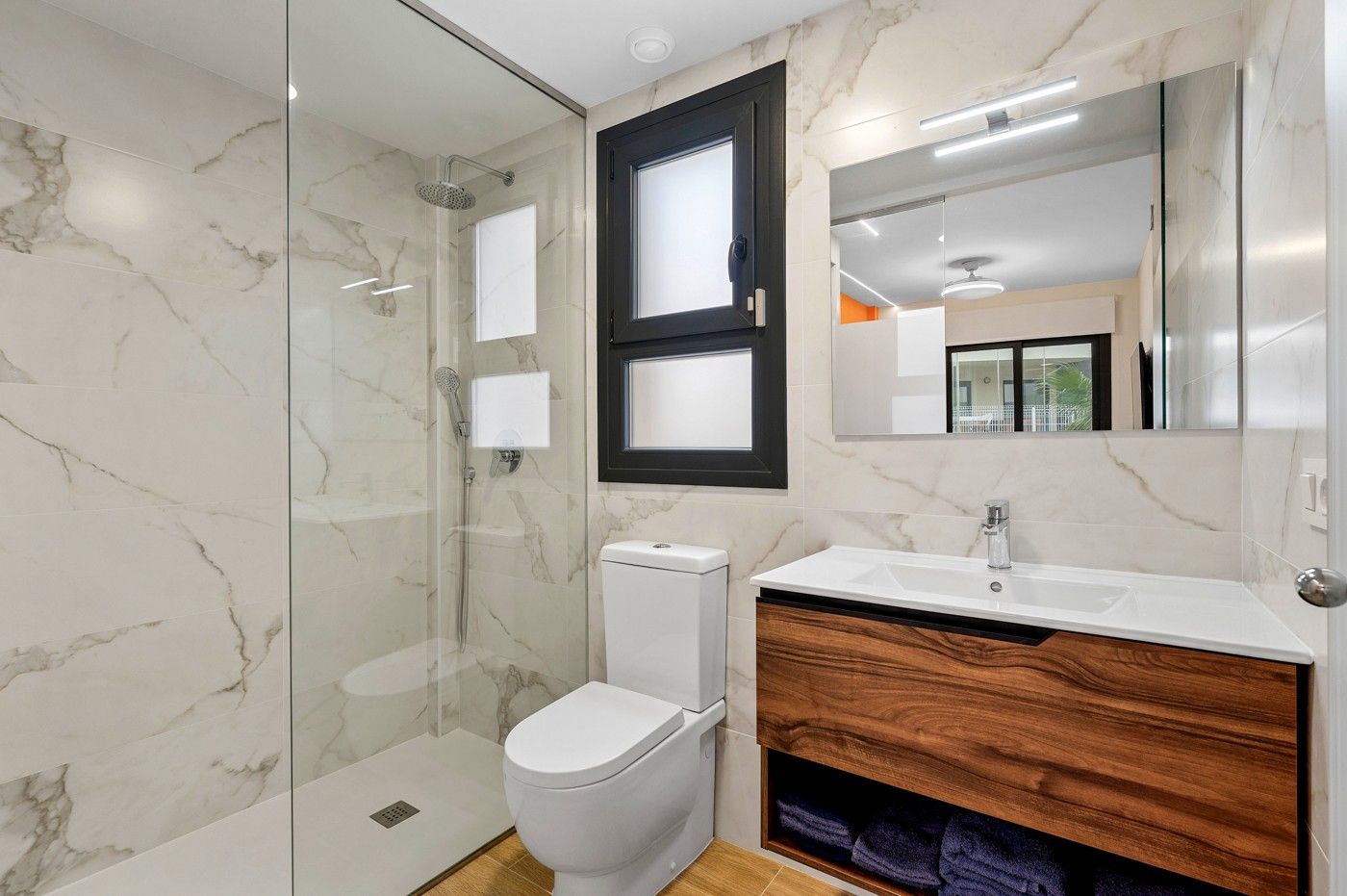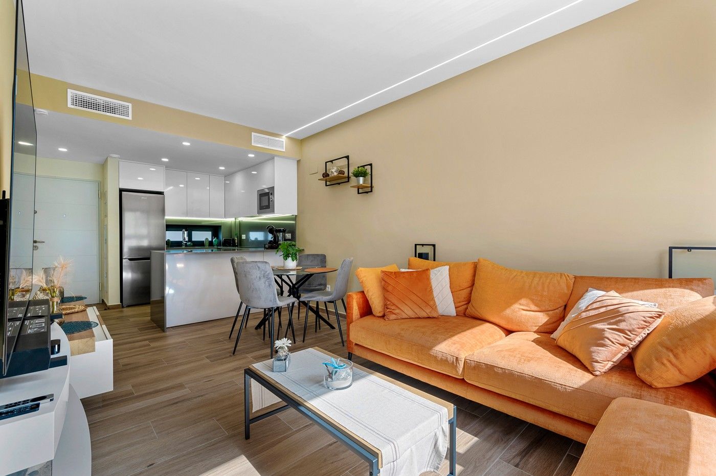 Este elegante apartamento esquinero en planta baja, con 2 dormitorios y 2 baños, se encuentra en Villamartín, Alicante, en una ubicación excelente. A pocos minutos a pie, podrá acceder a todos los servicios locales, como restaurantes, bares y tiendas. La hermosa playa de La Zenia y el famoso centro comercial La Zenia Boulevard están a menos de 10 minutos en coche. Además, Villamartín Plaza y Villamartín Golf están a pocos minutos.~~La propiedad cuenta con un amplio salón con zona de comedor, una moderna cocina en forma de U, persianas eléctricas, aire acondicionado (frío/calor), un amplio dormitorio principal con vestidor y baño en suite, un segundo dormitorio con armario empotrado y un baño adicional con ducha a ras de suelo. A través de las puertas correderas, se accede a la soleada terraza (con un pequeño trastero), completamente cerrada y equipada con cortinas de cristal para mayor privacidad y comodidad. Además, incluye una plaza de aparcamiento privada.~~Con orientación suroeste, el apartamento le permite disfrutar de abundante luz natural y sol durante todo el día. Se ofrece amueblado, excepto algunos objetos personales que el propietario se llevará. La propiedad está como nueva y amueblada con muebles de primera calidad. Además, está equipada con sistema de alarma y sistema de cámaras para mayor seguridad.~~El complejo ofrece hermosas instalaciones comunes, que incluyen piscina, pista de petanca, parque infantil y un parque para relajarse.~~Este apartamento combina una excelente relación calidad-precio con una ubicación ideal. Todos los servicios, como bares, restaurantes y tiendas, están a poca distancia a pie.~~Villamartín es un destino turístico popular y ha atraído a numerosos expatriados de Europa Occidental durante más de 10 años, transformando la zona en un lugar moderno y vibrante. En los alrededores, encontrará varios campos de golf y numerosas playas de arena dorada, lo que lo convierte en un lugar perfecto tanto para turistas como para residentes permanentes. Con recientes mejoras y acabados de alta calidad, este apartamento es una excelente opción para quienes buscan comodidad, estilo y practicidad.~