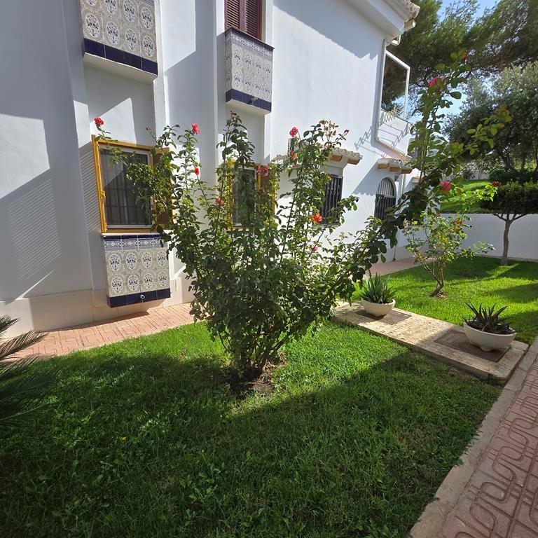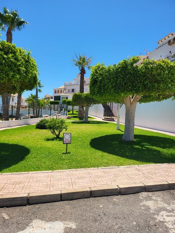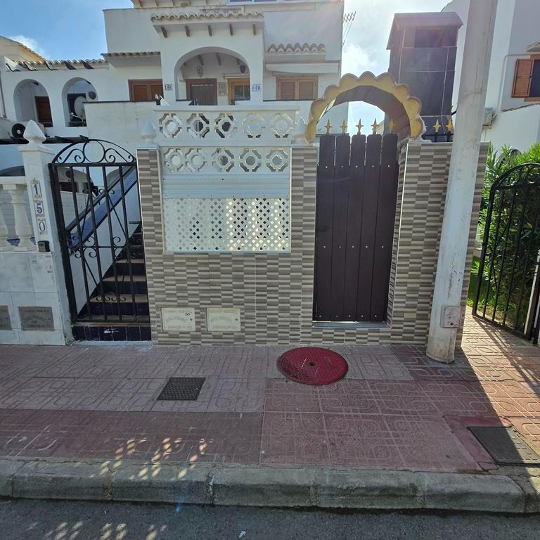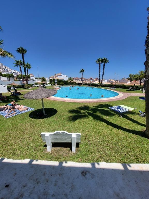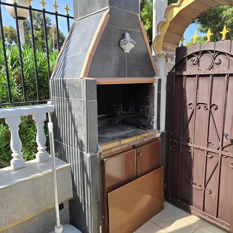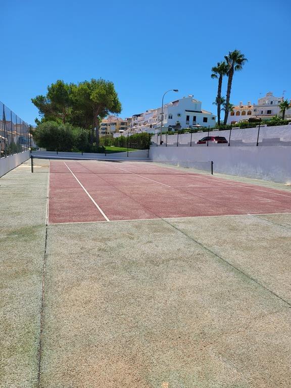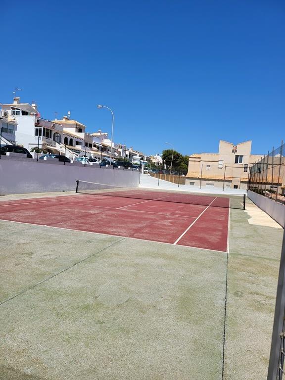 En la zona de Cabo Cervera, y a quinientos metros de la playa de la Mata, se encuentra este cuidado bungalow dentro de un residencial con una estupenda piscina comunitaria, bonitas zonas verdes y pistas de tenis.~ La vivienda consta de porche de 20 metros cuadrados con barbacoa y trastero, amplio salón, cocina americana, tres dormitorios, baño completo con plato de ducha y sótano terminado de 11 metros cuadrados aproximadamente.~ La vivienda rodeada de un bonito jardín, al ser la esquina de su fase, tiene muchísima luz, estando orientada en su frente al este y en parte trasera al oeste.~ La vivienda se entrega amueblada y con electrodomésticos. Dispone de aire acondicionado.~~Dentro del mismo residencial disponemos de dos plazas de garaje opcionales.~~
