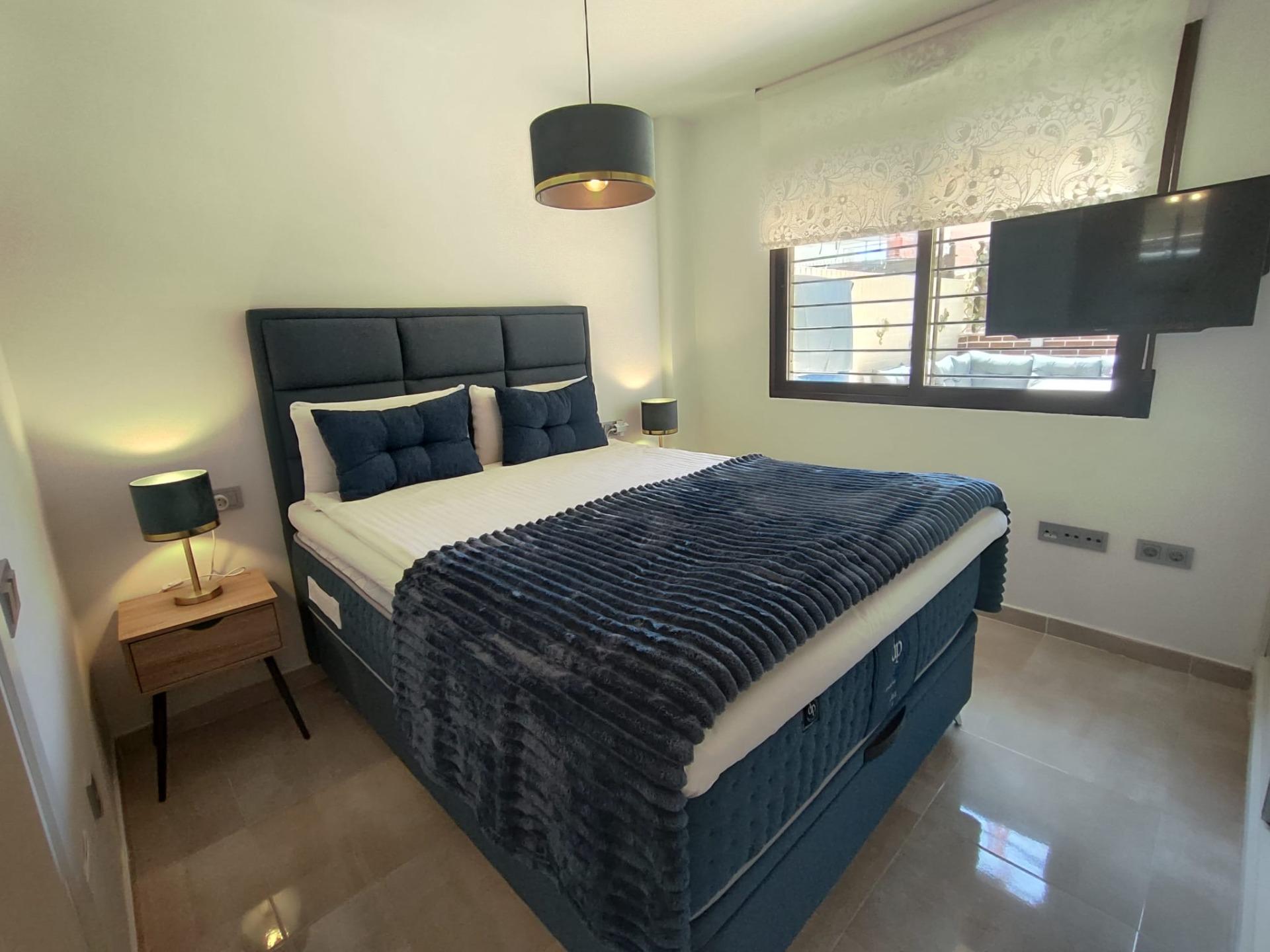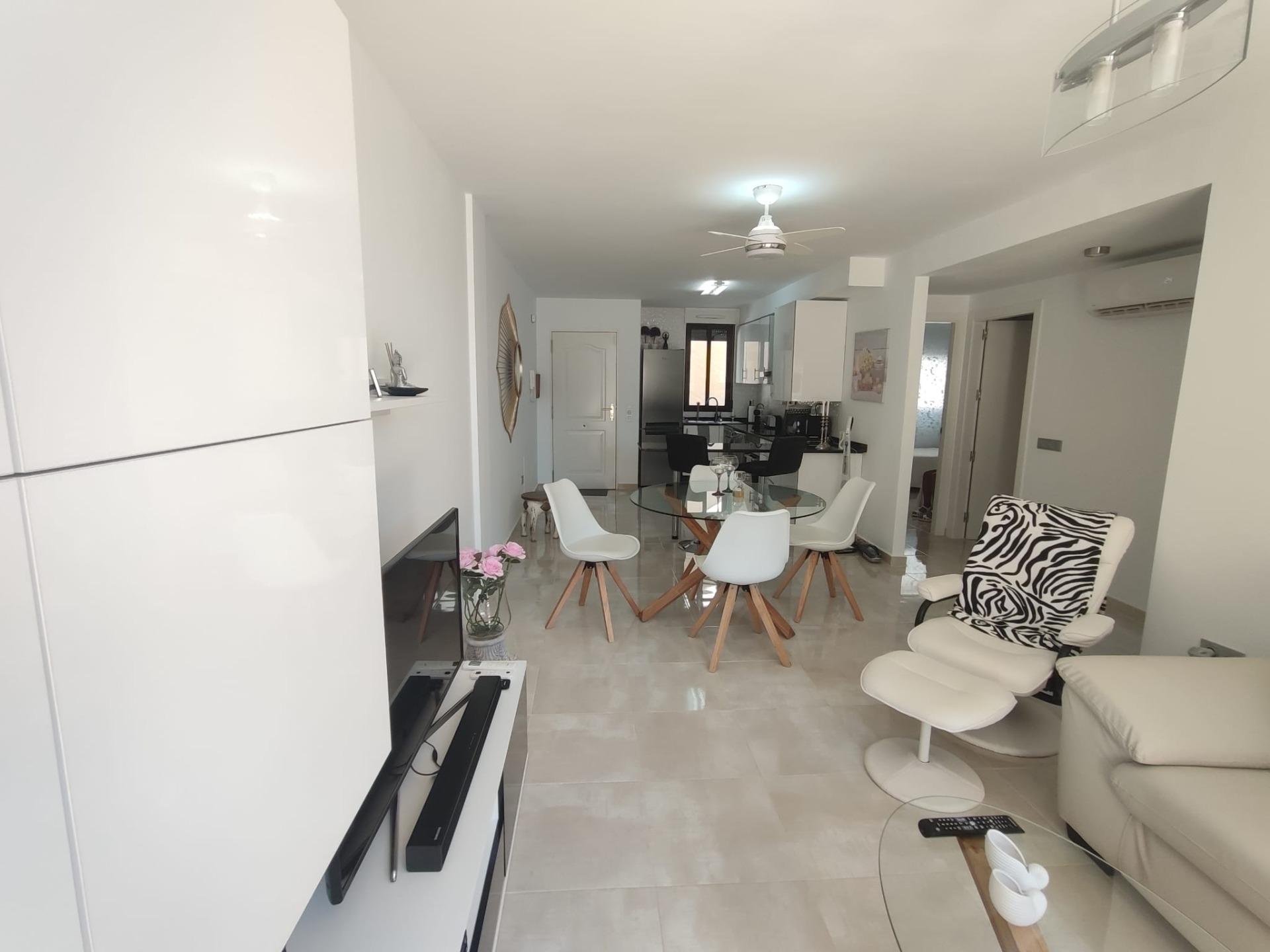 Magnífico bungalow de planta baja situado en la zona Lomas de Cabo Roig, a tan solo 3500 metros de la playa. Con una superficie construida de 75m2 y una espaciosa terraza de 16m2, esta propiedad cuenta con dos habitaciones dobles, dos baños completos y una cocina totalmente equipada. La carpintería interior es de madera y el suelo está revestido en gres porcelánico. Además, ofrece acceso para personas con movilidad reducida, armarios empotrados, calefacción mediante splits en paredes y un moderno gimnasio. Disfrute del jacuzzi junto a la piscina o relájese en la sauna después de un día jugando al golf o disfrutando del sol cerca del mar Mediterráneo.~