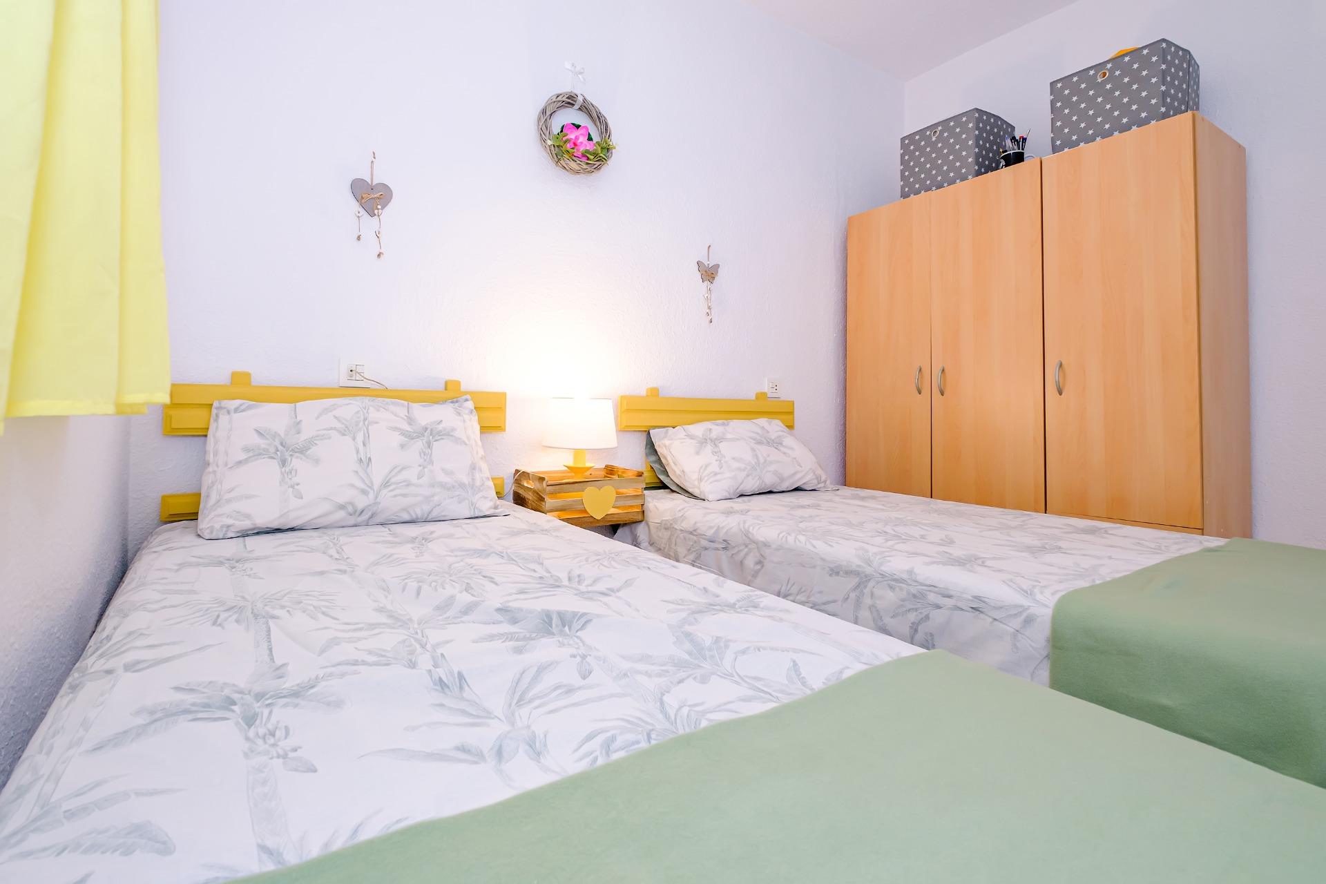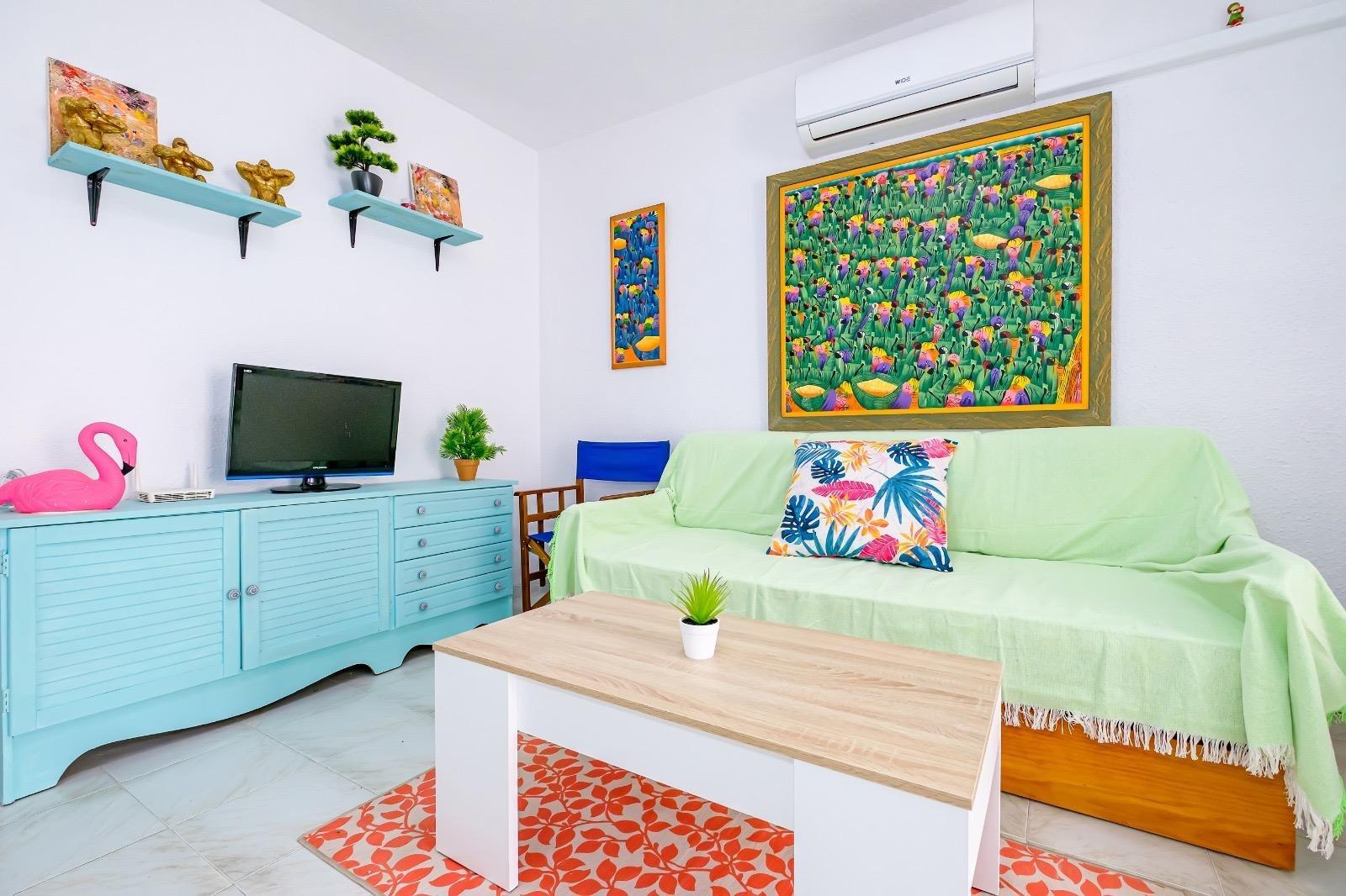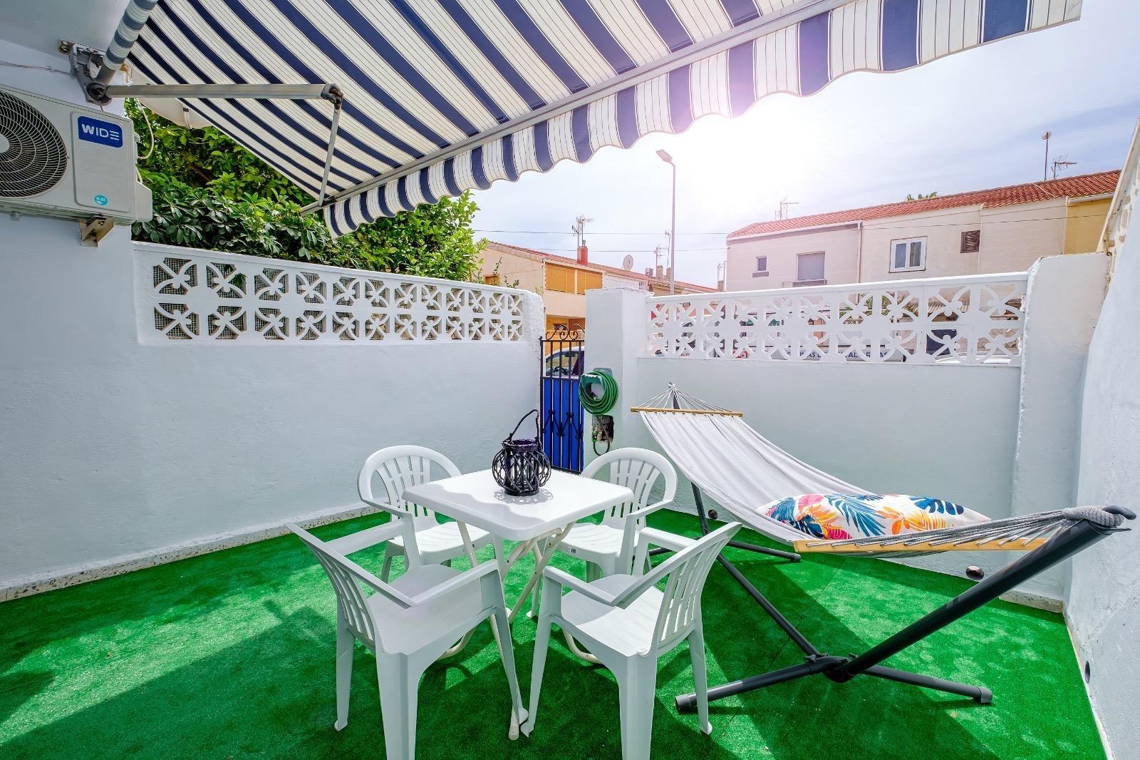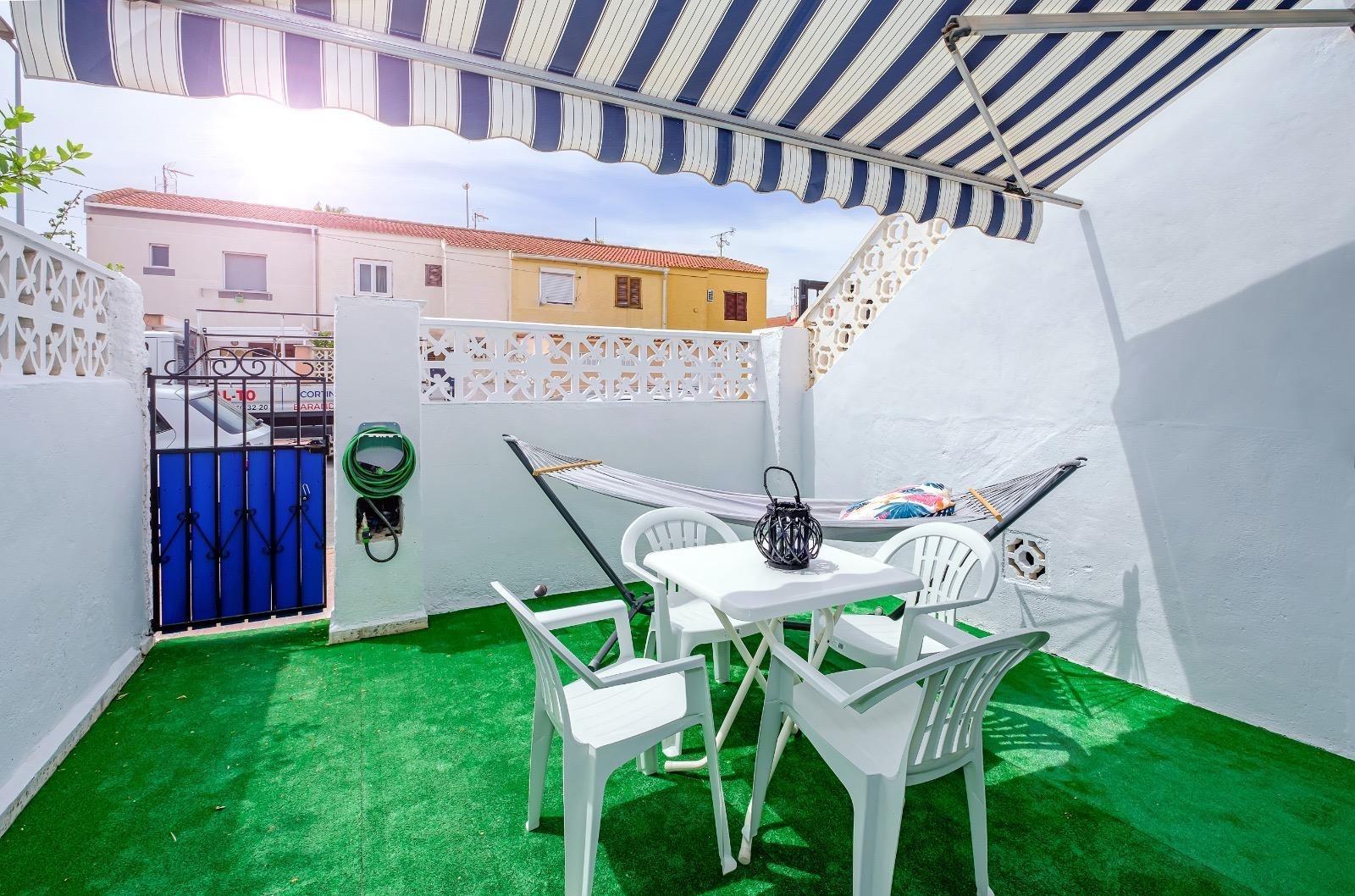 A tan sólo 220 metros de la Playa de Los Náufragos ponemos a la venta este bonito y luminoso bungalow en planta baja. Tiene una superficie de 55 m2, más una terraza delantera de 20 m2, y un patio trasero de 15 m2. que se puede usar como habitación auxiliar.~Al entrar en la vivienda encontramos el amplio salón, una gran cocina de concepto abierto, 2 dormitorios dobles y un cuarto de baño completo con ducha.~~Tiene aire acondicionado, y se vende equipado con todo lo necesario, sólo tienes que traer tu maleta e instalarte.~