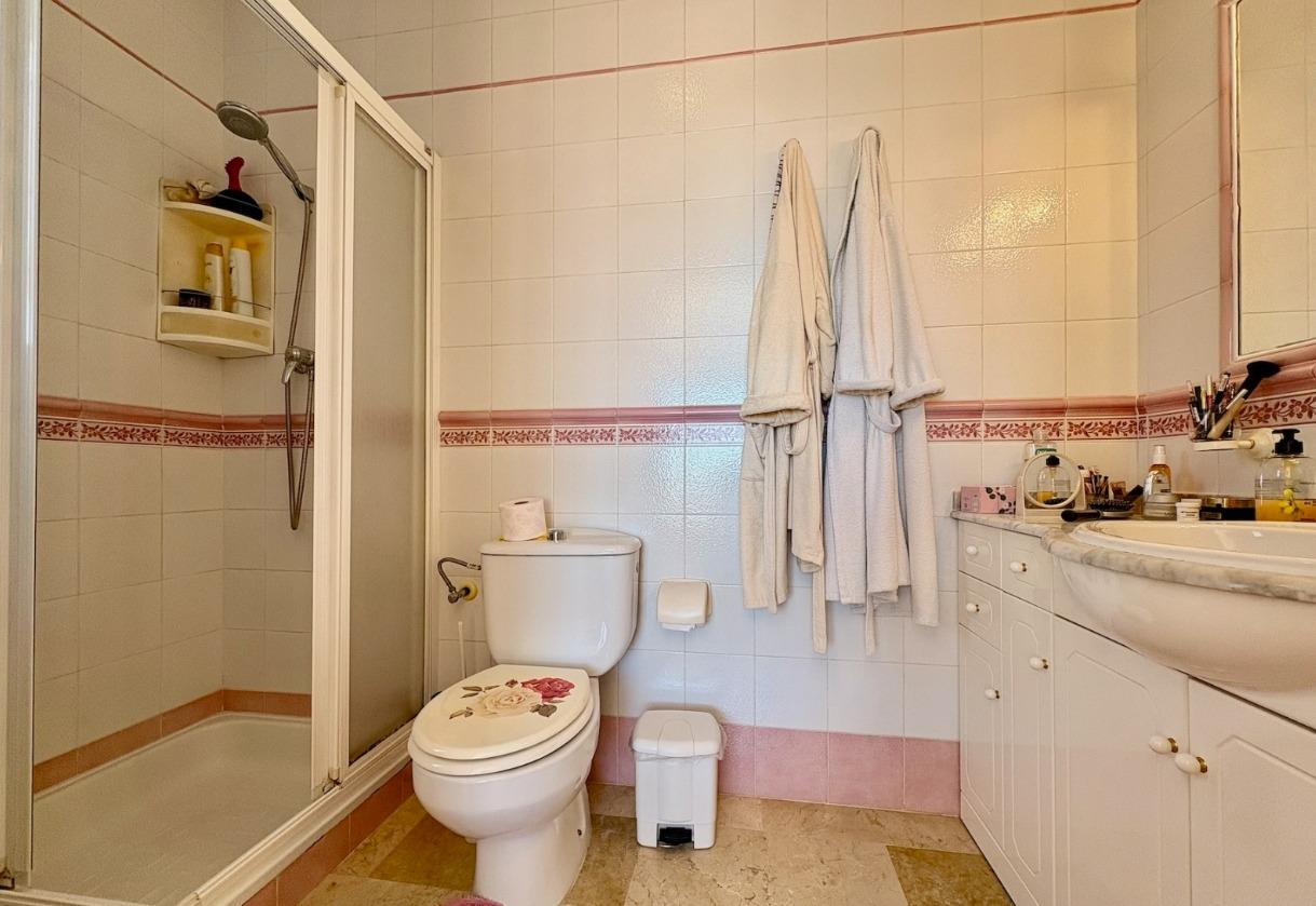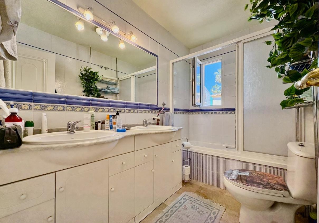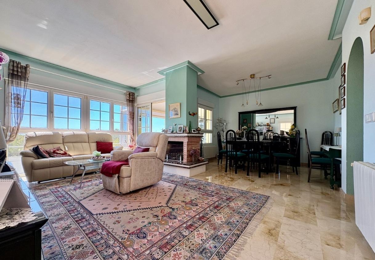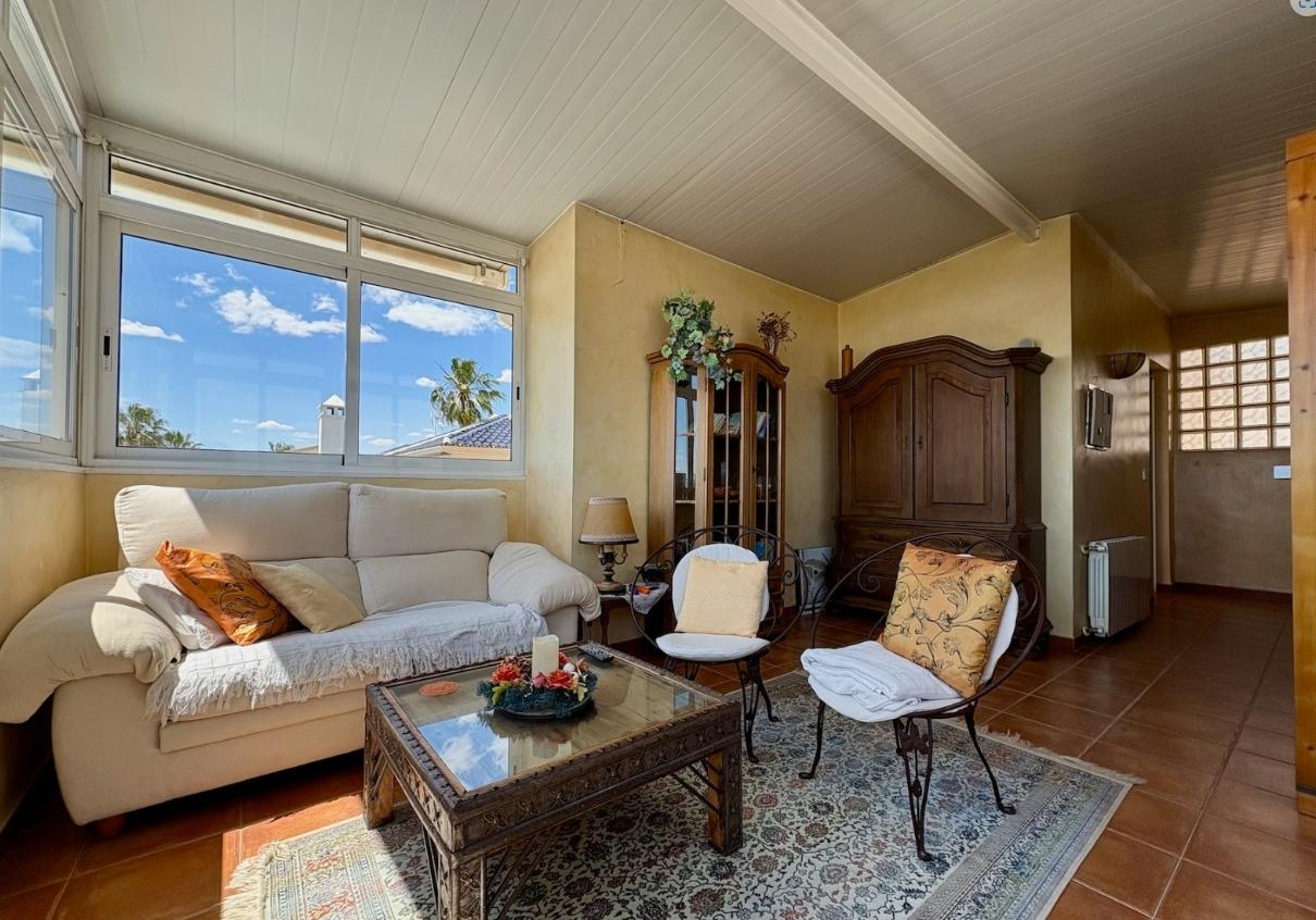 Beautiful Villa in Rioja-Villamartin with Sea Views~Mediterranean Charm in the Heart of Villamartín Located in the exclusive residential complex “RIOJA”, within the Villamartín Golf Course, in the municipality of Orihuela, this bright “Brisas”-type home harmoniously combines comfort, Mediterranean design, and outdoor living.~~Spread over two floors connected by an internal staircase, the property offers a usable area of 137.08 m² and a built area of 160 m². Its smart layout includes various rooms and amenities ensuring both functionality and comfort. On the upper floor, the studio provides a versatile space ideal for working, relaxing, or exercising.~~Its generous outdoor areas stand out: a main terrace, perfect for enjoying the area’s mild climate; a glazed terrace that extends the living room outdoors; and a spacious entrance hall that welcomes with openness and elegance. The true heart of the home is its private 245 m² garden, featuring an individual swimming pool—perfect for leisure, peace, or social gatherings. The plot’s south-facing façade ensures brightness throughout the day, and even offers sea views over the pine forest located directly in front of the house.~~Living in Villamartín Golf Course Villamartín is much more than a golf course—it’s one of the most sought-after residential areas on the Costa Blanca. Surrounded by nature, services, shopping centers, and restaurants, it offers a peaceful yet well-connected setting, ideal for both permanent living and holiday stays. The prestigious 18-hole golf course, its green views, and the international atmosphere create a relaxed, active, and exclusive lifestyle.~