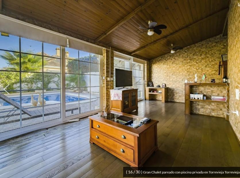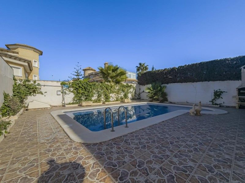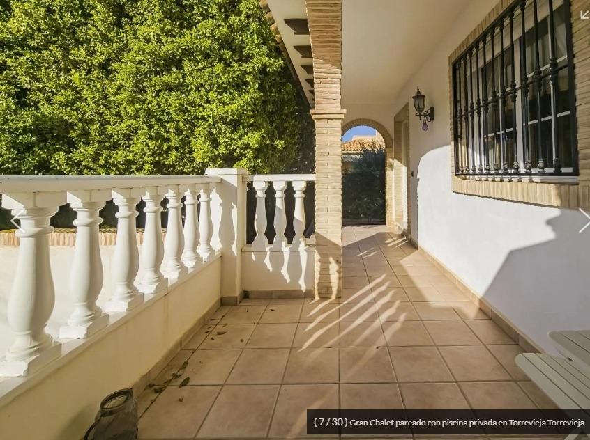 Tu hogar ideal te espera en la exclusiva zona de Aguas Nuevas en Torrevieja. Este espectacular chalet adosado combina espacio, comodidad y un toque de lujo, todo a solo 1,5 km de la playa. Si buscas una vivienda que lo tenga todo, esta es la oportunidad que estabas esperando. ~~Ubicada en una amplia parcela de 560 m², esta propiedad te sorprenderá con su jardín privado de 230 m² y una piscina espectacular, perfecta para refrescarte y disfrutar del maravilloso clima mediterráneo. Con 205 m² distribuidos en tres plantas, cada rincón de esta casa está pensado para ofrecerte la máxima comodidad y estilo. ~~En la planta baja, encontrarás un dormitorio acogedor, un baño completo y una cocina independiente diseñada para que disfrutes al máximo tus momentos culinarios. El porche, con detalles de piedra y suelo de parquet, es el lugar ideal para relajarte o recibir a tus invitados con vistas a tu propio oasis. ~~La segunda planta no se queda atrás, con dos dormitorios llenos de luz y encanto. Uno de ellos da acceso a un amplio balcón orientado al sur, donde podrás disfrutar del sol y las vistas, mientras que el otro cuenta con un balcón más íntimo orientado al norte. Un baño completo en esta planta asegura el confort para toda la familia. ~~Pero eso no es todo: el sótano es un verdadero lujo. Con espacio para 2 o 3 coches y motos, además de un trastero, tendrás todo el almacenamiento y practicidad que necesitas. ~~La ubicación es simplemente perfecta. En la zona de Aguas Nuevas, estarás rodeado de servicios como colegios, supermercados, centros de salud, zonas deportivas y una excelente oferta de ocio y restaurantes. Todo lo que necesitas, a un paso de casa. ~~Este chalet no es solo una vivienda; es el hogar donde crearás recuerdos inolvidables. Contáctanos ahora y ven a verlo, porque propiedades como esta no están disponibles todos los días. ~~Si estás interesado en conocer más sobre esta propiedad sin ningún compromiso, no dudes en ponerte en contacto con nosotros. Estaremos encantados de brindarte información adicional y programar una visita a tu conveniencia. ¡No te pierdas la oportunidad de explorar esta vivienda!~