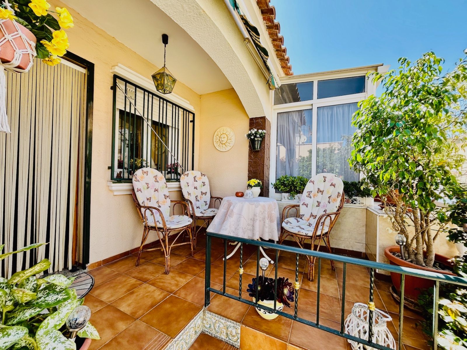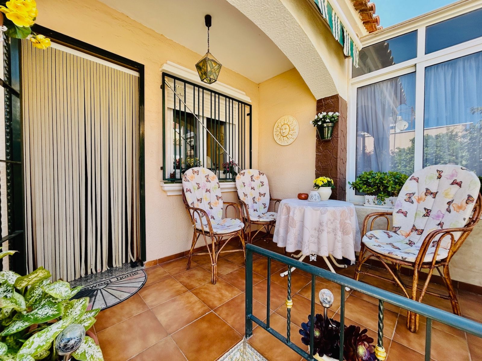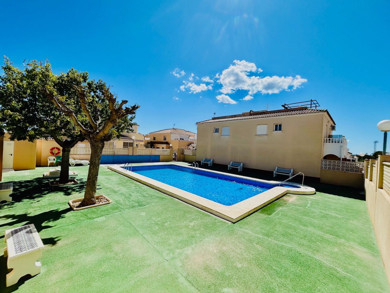 Descubre esta maravillosa vivienda unifamiliar adosada en el exclusivo complejo urbanístico Torre Golf II, ubicado en la cotizada zona de Playa Flamenca, Orihuela Costa.~Este dúplex de la segunda fase de edificación cuenta con una parcela de 115,71 m², de los cuales 60,48 m² están ocupados por la vivienda, dejando un agradable espacio ajardinado ideal para disfrutar del aire libre. Con una superficie construida total de 85,66 m² distribuidos en dos plantas, esta propiedad ofrece un diseño funcional y acogedor, comunicando ambas plantas mediante una cómoda escalera interior.~~La vivienda se encuentra orientada al sol de la tarde, asegurando una excelente iluminación natural y un ambiente cálido durante todo el día. Se vende completamente amueblada y equipada, lista para entrar a vivir.~~Ventajas de vivir en Playa Flamenca~~Playa Flamenca es una de las zonas más demandadas de Orihuela Costa, gracias a su excepcional calidad de vida. Aquí podrás disfrutar de preciosas playas de aguas cristalinas, paseos marítimos, y una amplia oferta de ocio, con bares, restaurantes y centros comerciales como el famoso Zenia Boulevard. Además, cuenta con excelentes conexiones por carretera, cercanía a campos de golf y una gran variedad de servicios que garantizan comodidad y bienestar.~~No dejes pasar esta oportunidad de vivir en un entorno privilegiado. ¡Contacta con nosotros para más información o para concertar una visita!~