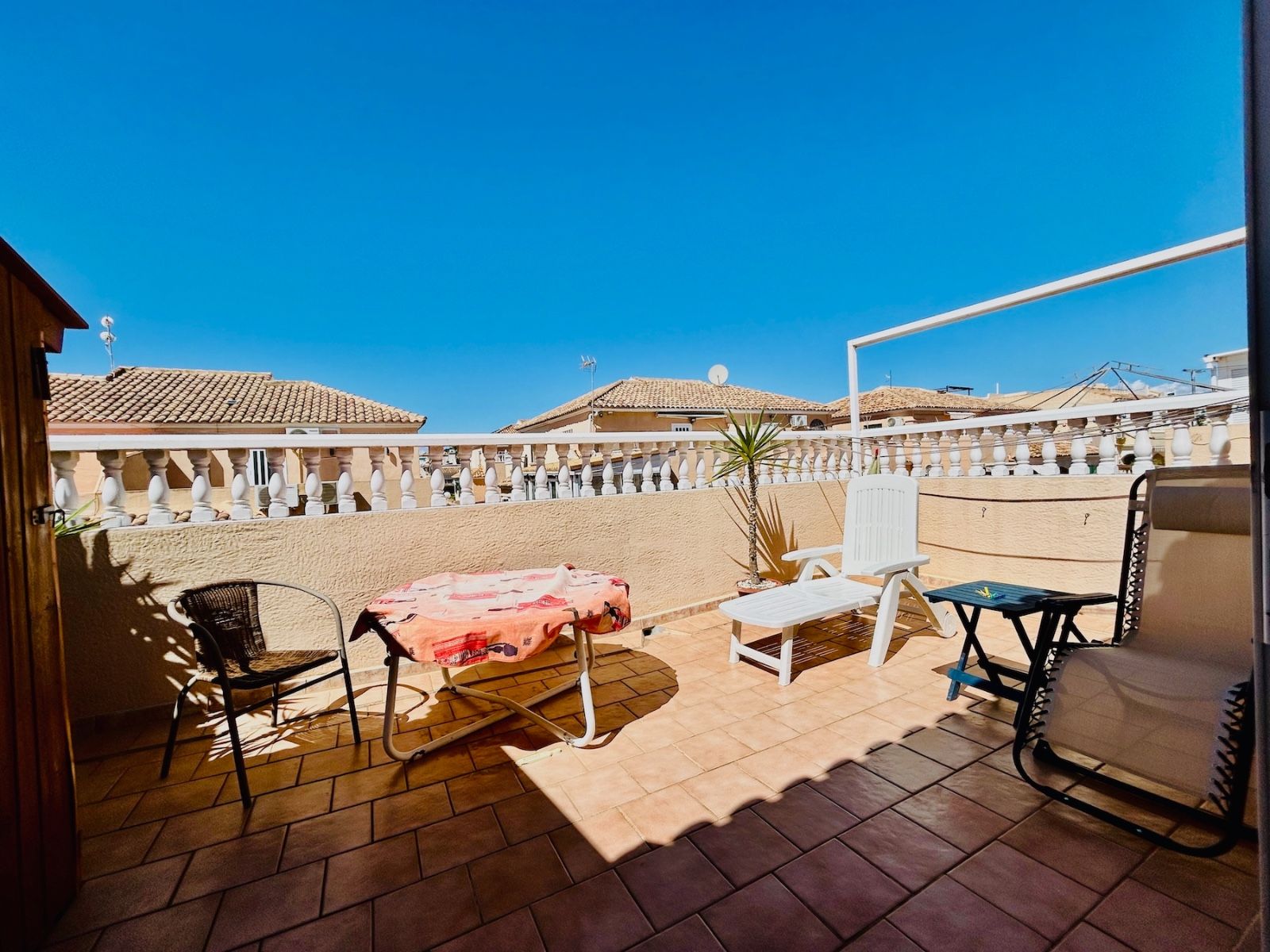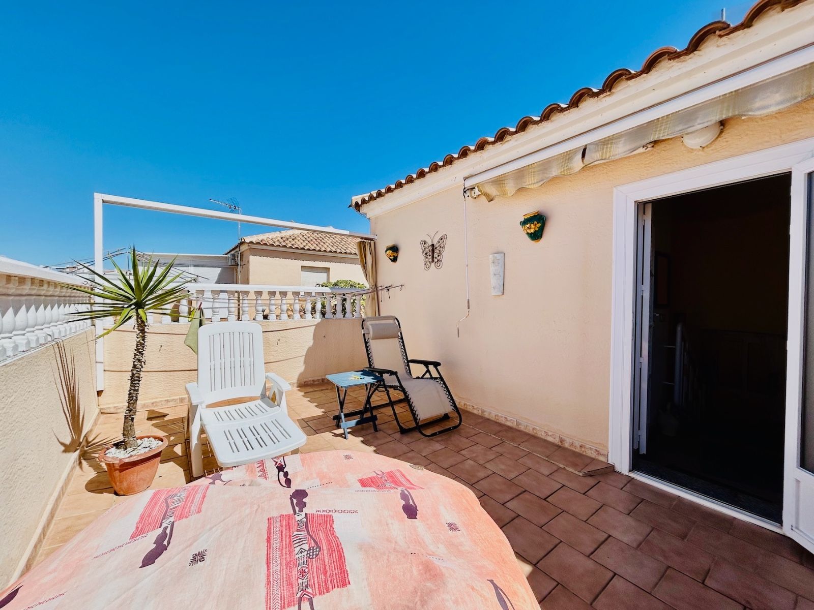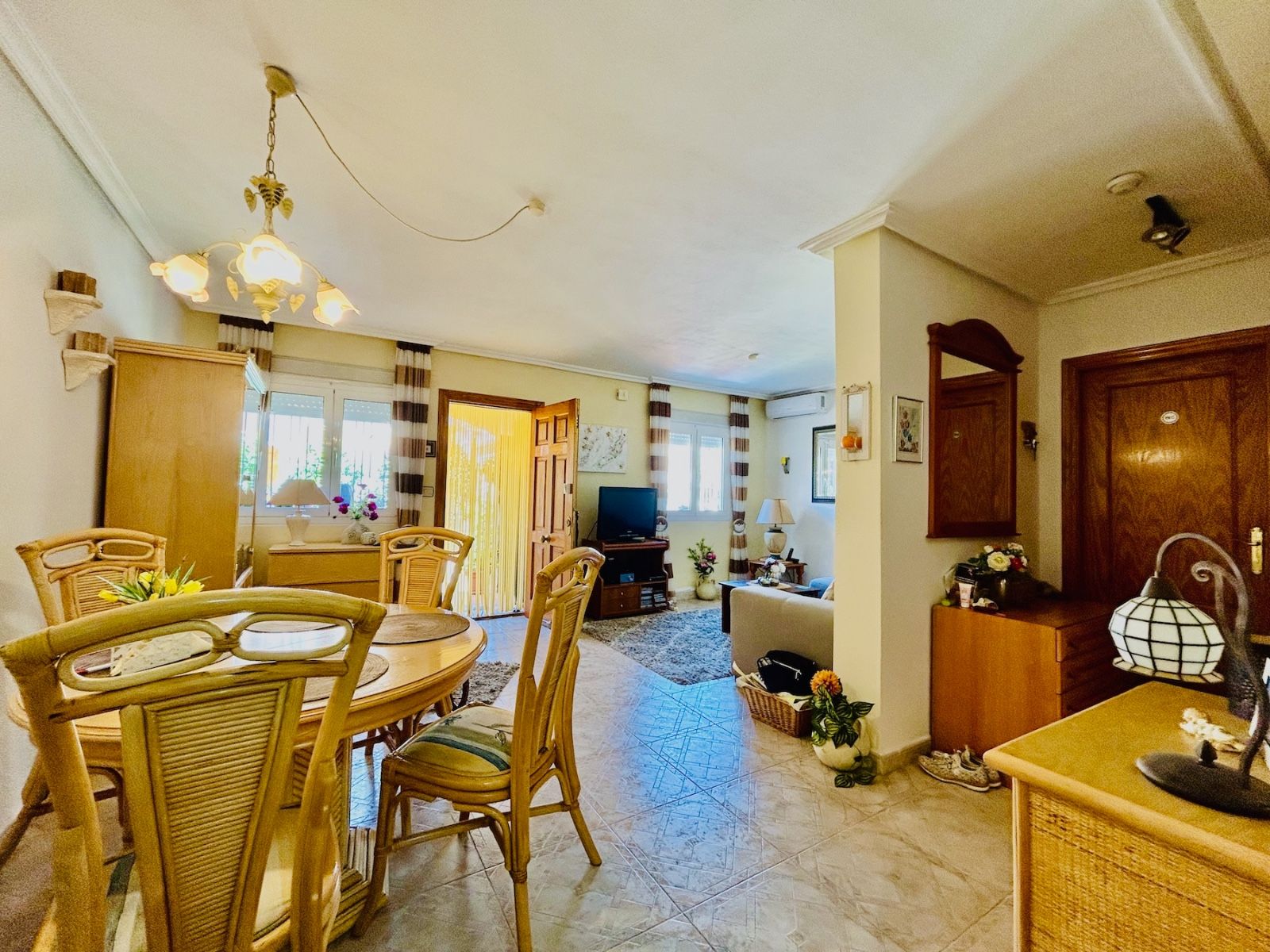 Descubre esta maravillosa vivienda unifamiliar adosada en el exclusivo complejo urbanístico Torre Golf II, ubicado en la cotizada zona de Playa Flamenca, Orihuela Costa.~Este dúplex de la segunda fase de edificación cuenta con una parcela de 115,71 m², de los cuales 60,48 m² están ocupados por la vivienda, dejando un agradable espacio ajardinado ideal para disfrutar del aire libre. Con una superficie construida total de 85,66 m² distribuidos en dos plantas, esta propiedad ofrece un diseño funcional y acogedor, comunicando ambas plantas mediante una cómoda escalera interior.~~La vivienda se encuentra orientada al sol de la tarde, asegurando una excelente iluminación natural y un ambiente cálido durante todo el día. Se vende completamente amueblada y equipada, lista para entrar a vivir.~~Ventajas de vivir en Playa Flamenca~~Playa Flamenca es una de las zonas más demandadas de Orihuela Costa, gracias a su excepcional calidad de vida. Aquí podrás disfrutar de preciosas playas de aguas cristalinas, paseos marítimos, y una amplia oferta de ocio, con bares, restaurantes y centros comerciales como el famoso Zenia Boulevard. Además, cuenta con excelentes conexiones por carretera, cercanía a campos de golf y una gran variedad de servicios que garantizan comodidad y bienestar.~~No dejes pasar esta oportunidad de vivir en un entorno privilegiado. ¡Contacta con nosotros para más información o para concertar una visita!~