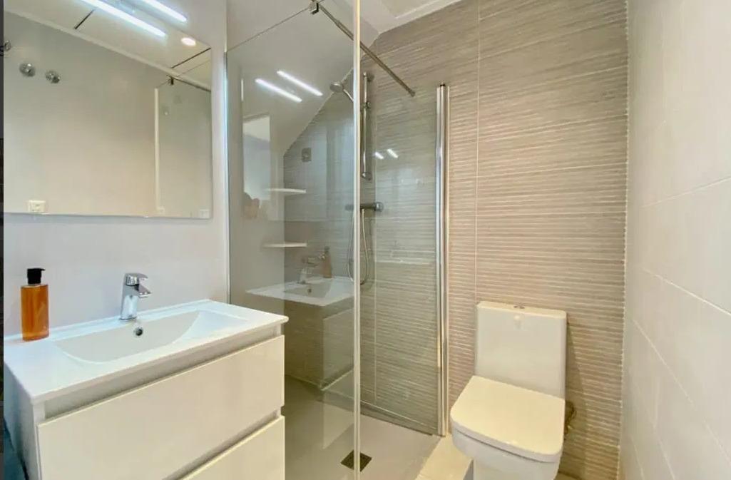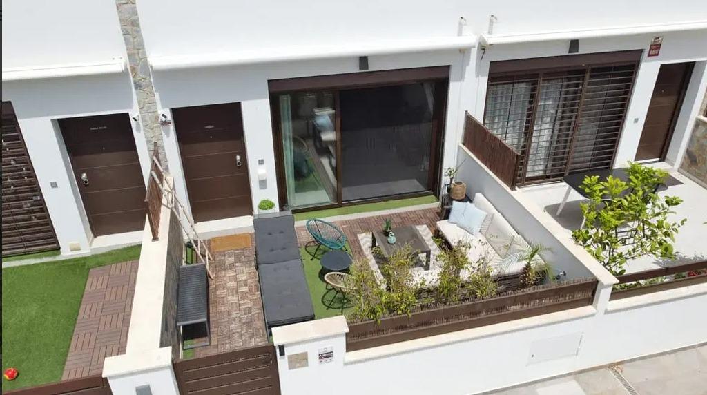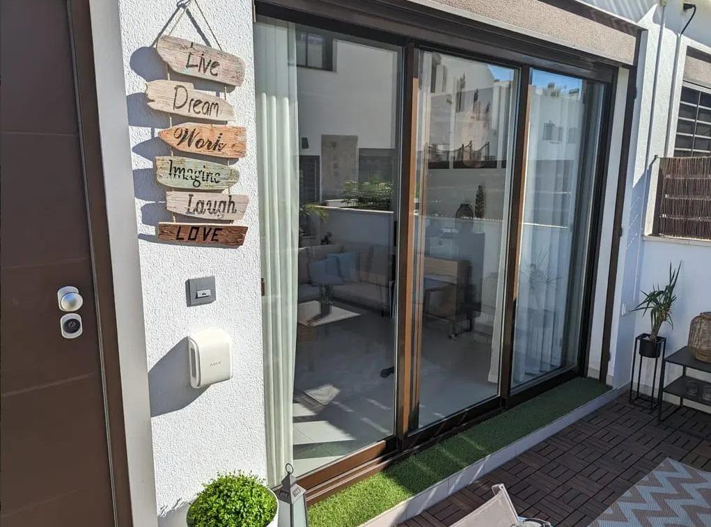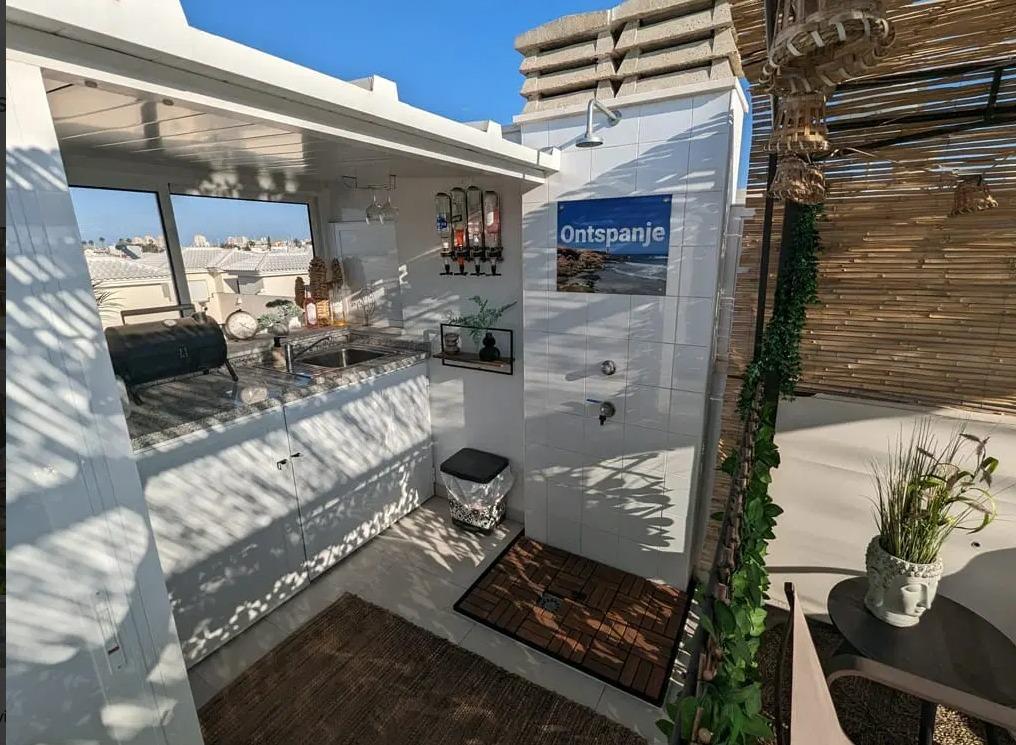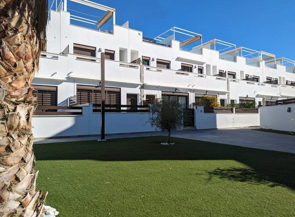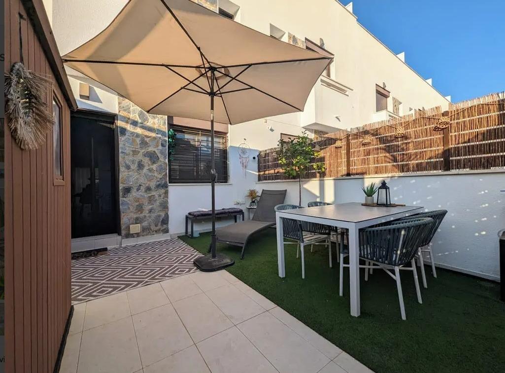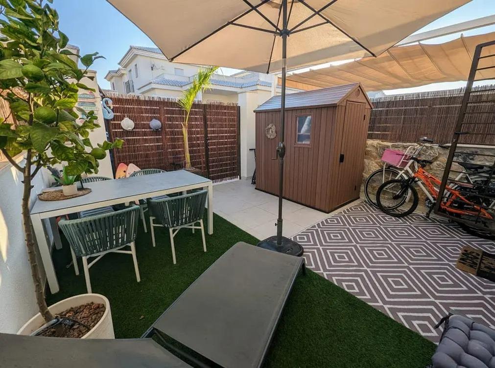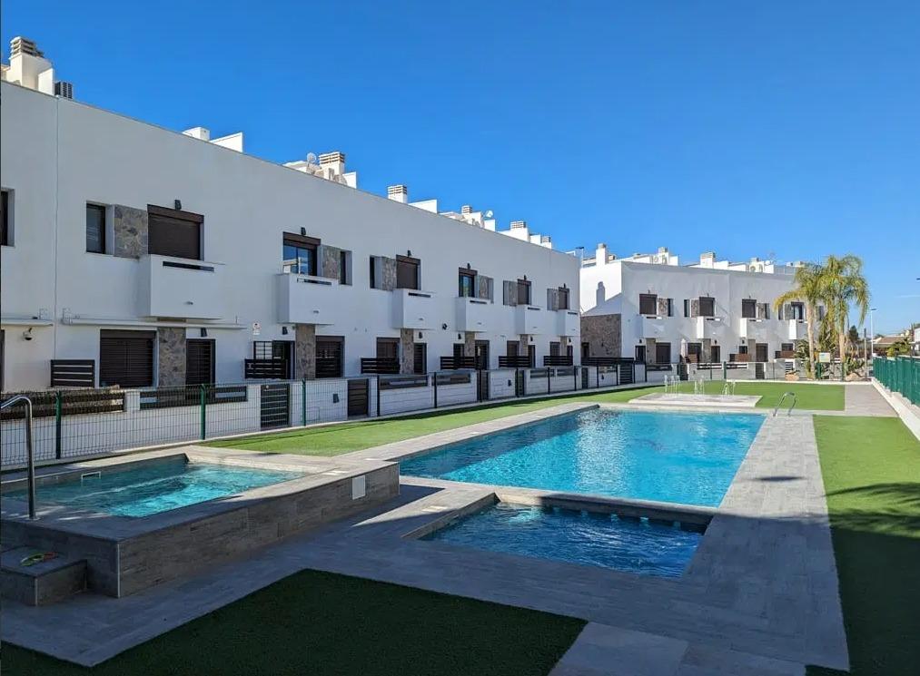 Duplex en venta en Torrevieja de 3 dormitorios 2 baños, urbanización, en piscina comunitaria.~~La casa tiene una ubicación tranquila y muchas comodidades a poca distancia. La residencia consta de 32 viviendas. Hay un bonito jardín comunitario con piscina, piscina para niños, jacuzzi y zona para tomar el sol.~~La casa tiene una hermosa terraza orientada al sur adyacente al salón. La puerta corredera del salón consta de 3 piezas con cristal de suelo a techo. Esto permite que entre mucha luz. En la planta baja se encuentra el salón, la cocina abierta, 1 dormitorio y 1 baño con ducha y WC. Desde la cocina hay una puerta exterior a la terraza orientada al norte. Aquí podrá aparcar su coche en su propia propiedad o en la calle cerrada. En el salón hay una escalera abierta con un trastero debajo que sube al primer piso. En el 1er piso hay 2 dormitorios y un baño con ducha y WC. En el pasillo hay una puerta exterior al balcón, el balcón está ubicado al sur y en invierno es maravilloso quedarse aquí. A la fantástica terraza de la azotea se accede a través de la escalera exterior. La terraza de la azotea tiene una cocina exterior cubierta, un trastero, un armario cerrado para la lavadora y el calentador de agua y, por supuesto, suficiente espacio para relajarse con una fantástica vista del lago salado.~~A 2 minutos a pie se encuentra el supermercado Economy Cash y muchos restaurantes agradables, varias pizzerías, un pub griego, uno indio, uno chino, uno irlandés y muchos más.~El hermoso y moderno centro comercial Habaneras se encuentra a 10 minutos a pie.~En poco menos de 20 minutos se puede caminar hasta el centro histórico de Torrevieja y el encantador bulevar también está a poca distancia.~~~~Características:~~Terraza planta baja orientación sur~Terraza planta baja orientación norte~Balcón~Terraza en azotea con cocina exterior y trastero cerrado.~Jardín comunitario~Piscina comunitaria (con piscina infantil y jacuzzi)~Residencia cerrada~Cocina con electrodomésticos incluidos~Baños completamente equipados con calefacción por suelo radiante.~Calefacción por suelo radiante en el salón.~Aire acondicionado instalado (LG – unidad individual por piso)~Armarios empotrados~Persianas enrollables eléctricas~Sombrilla eléctrica para terraza lado sur~Todas las ventanas y puertas de la planta baja están equipadas con mosquiteras.~Sistema de alarma instalado con detección interior y exterior.~Es posible aparcar en propiedad privada o en calle cerrada.~