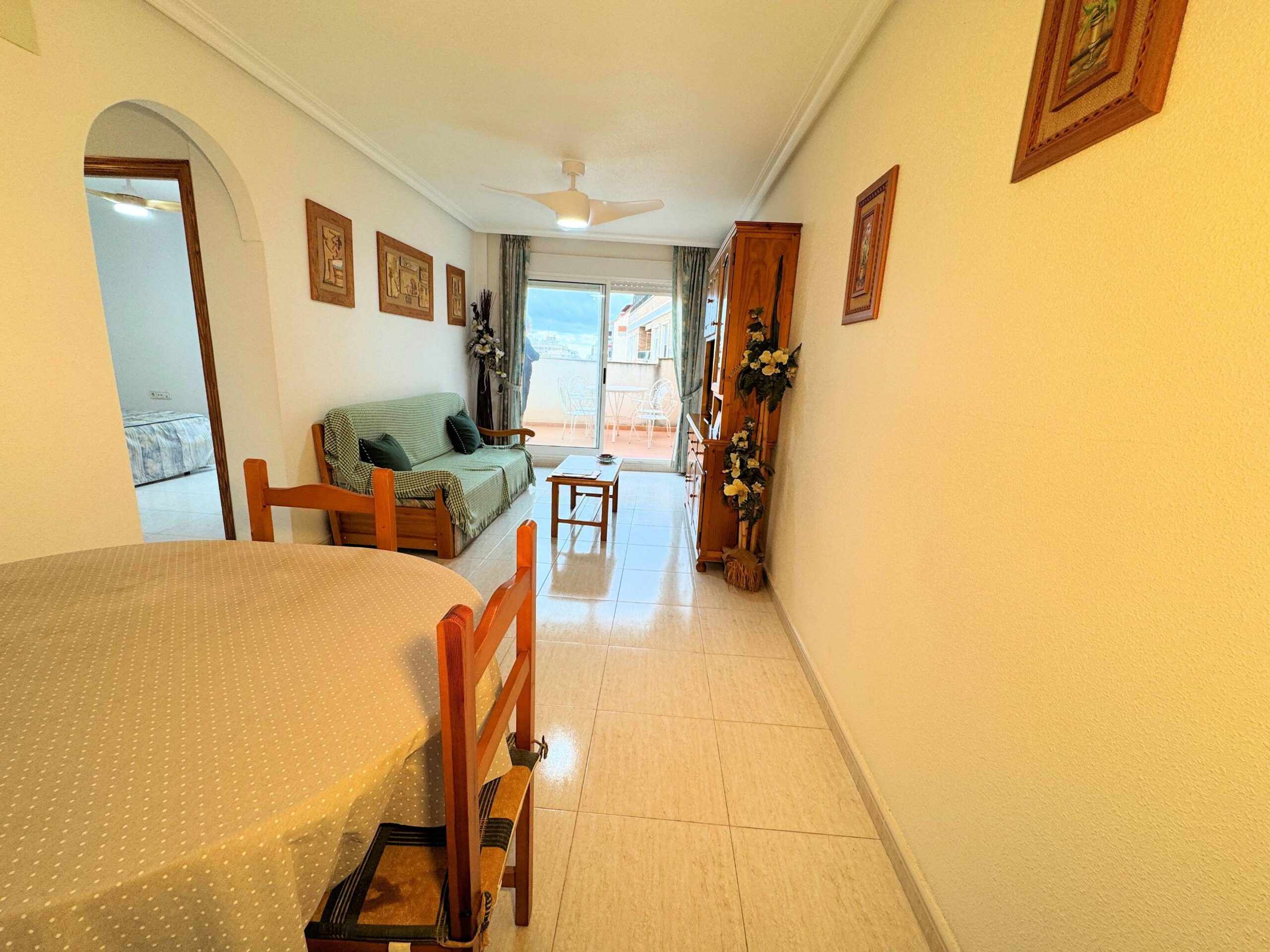 Se vende ático en Torrevieja con garaje incluido formado por 2 habitaciones, 1 baño, cocina americana, aire acondicionado, ascensor, balcón, amueblado, tv, trastero, terraza, cuenta con piscina comunitaria.~La orientación es este y es muy luminoso, esta situado en la zona céntrica de Torrevieja. El centro de Torrevieja es una zona vibrante y turística, conocida por su puerto, playas, calles comerciales y una amplia oferta de restaurantes, bares y tiendas. Ofrece un ambiente acogedor con una mezcla de arquitectura moderna y tradicional, y es un lugar ideal para pasear y disfrutar de su clima mediterráneo.~