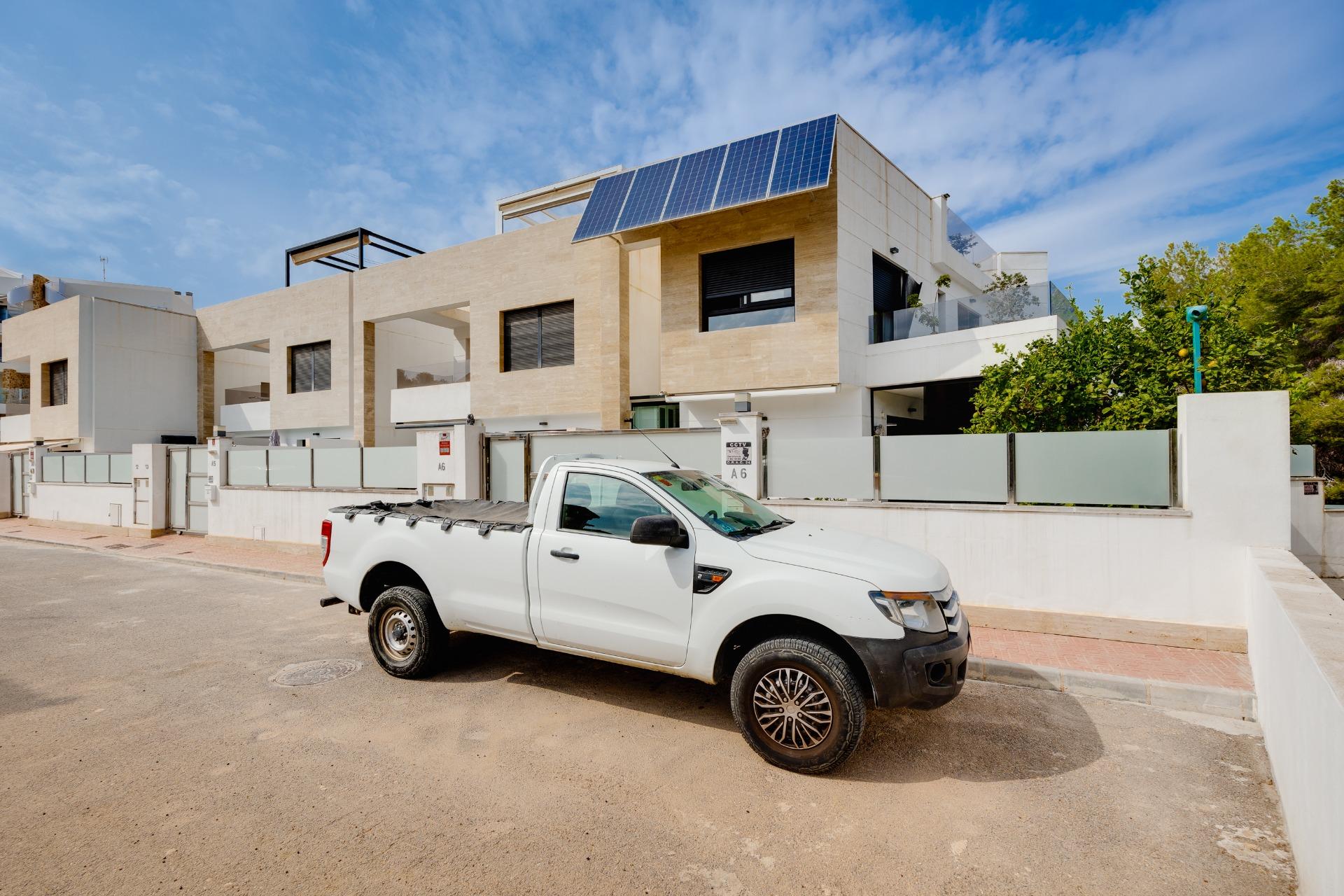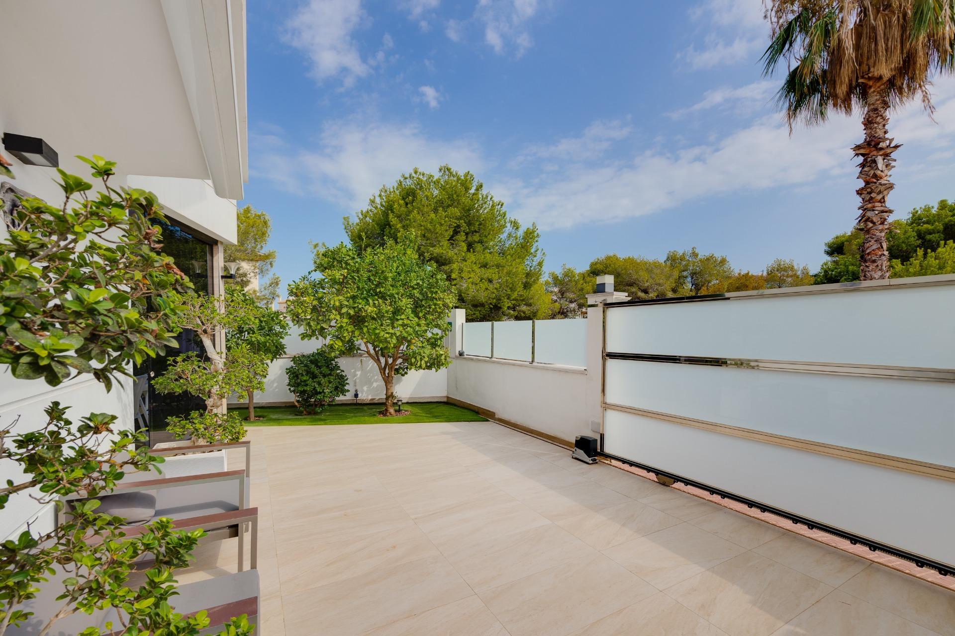 Villa de Lujo con piscina en un lugar tranquilo cerca Campos de Golf, Las Filipinas, Orihuela Costa.~Si buscas una casa cerca de la Costa Mediterranea, pero al mismo tiempo en un lugar tranquilo y rodeado de naturaleza . Entonces esta Villa puede convertirse en tu hogar .~Te ofrecemos esta Villa moderna y exclusiva , que consta de 3 plantas, que tiene 3 dormitorios, 3 baños y 1 Aseo, 2 salones , terrazas , veranda acristalada y cuartos de servicio.~En la planta baja de la Villa se encuentra el salón y la cocina tipo office, totalmente equipada con equipos modernos y exclusivos (filtros de agua, extractor de humos , triturador de fregadero) y tambien hay un aseo.~Hay suelo radiante en toda planta baja. También hay acceso a la veranda por donde se puede bajar a la piscina y la planta del sotano. ~En el sotano encontramos un apartamento independiente con su salón y Bar, Tlevisor y chimenea electrica, dormitorio y baño grande, sauna y lavanderia . ~También hay un gran trastero.~Todos los Pisos están conectados por una escalera interna . ~En la primera planta de la casa hay un dormitorio con baño en suite y un despacho ( puede ser otro dormitorio) y un baño completo .~Desde el dormitorio y el estudio hay acceso a una gran Terraza con hermosas vistas al Jardín. ~Subiendo al piso superior, nos dirigimos a un gran solarium equipado con tumbonas y la ducha . Desde allí hay hermosas vistas de los jardines y la naturaleza circundante donde puedes relajarte y tomar el sol.~La casa tiene su propia piscina de casi 12 m2, hay una caseta para perros, Barbacoa, árboles, paneles solares (3,6 kilovatios) ~La potencia para la sauna (10kilovatios).~La superficie total de la Villa es 227m2.~