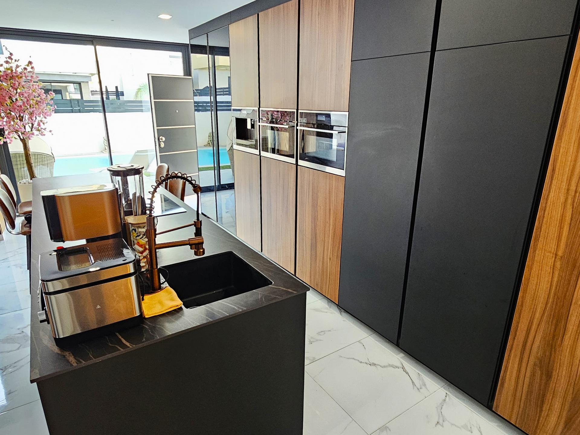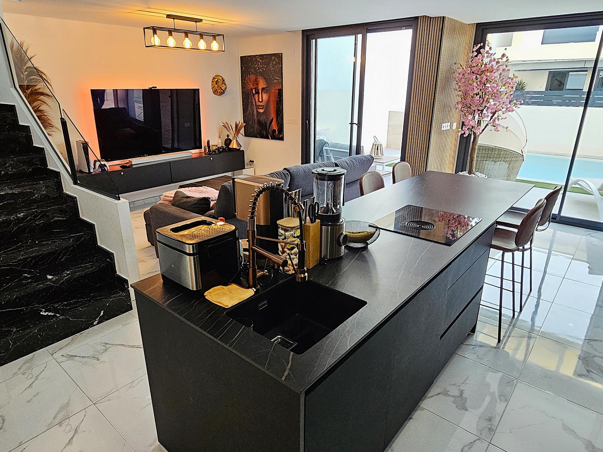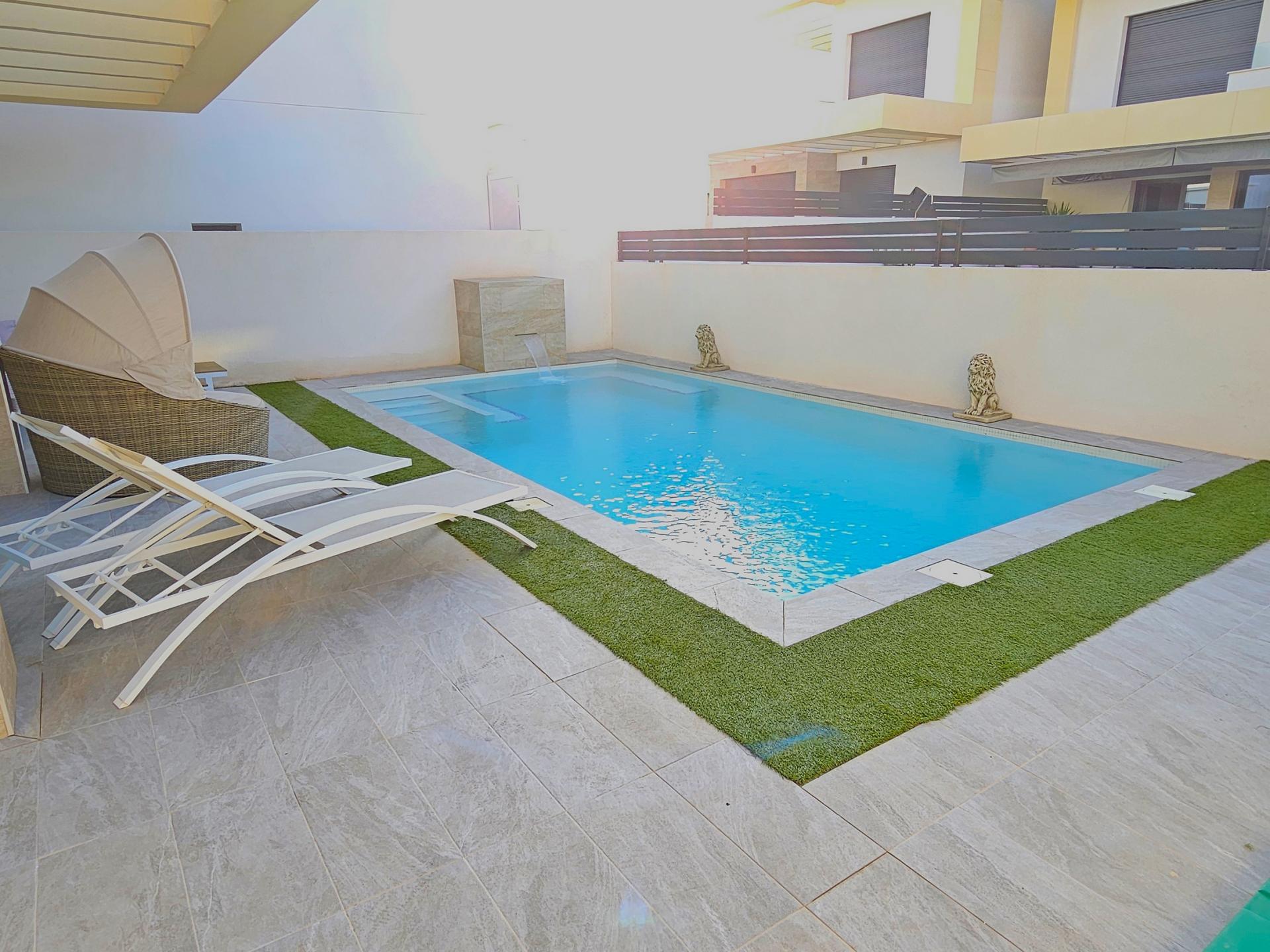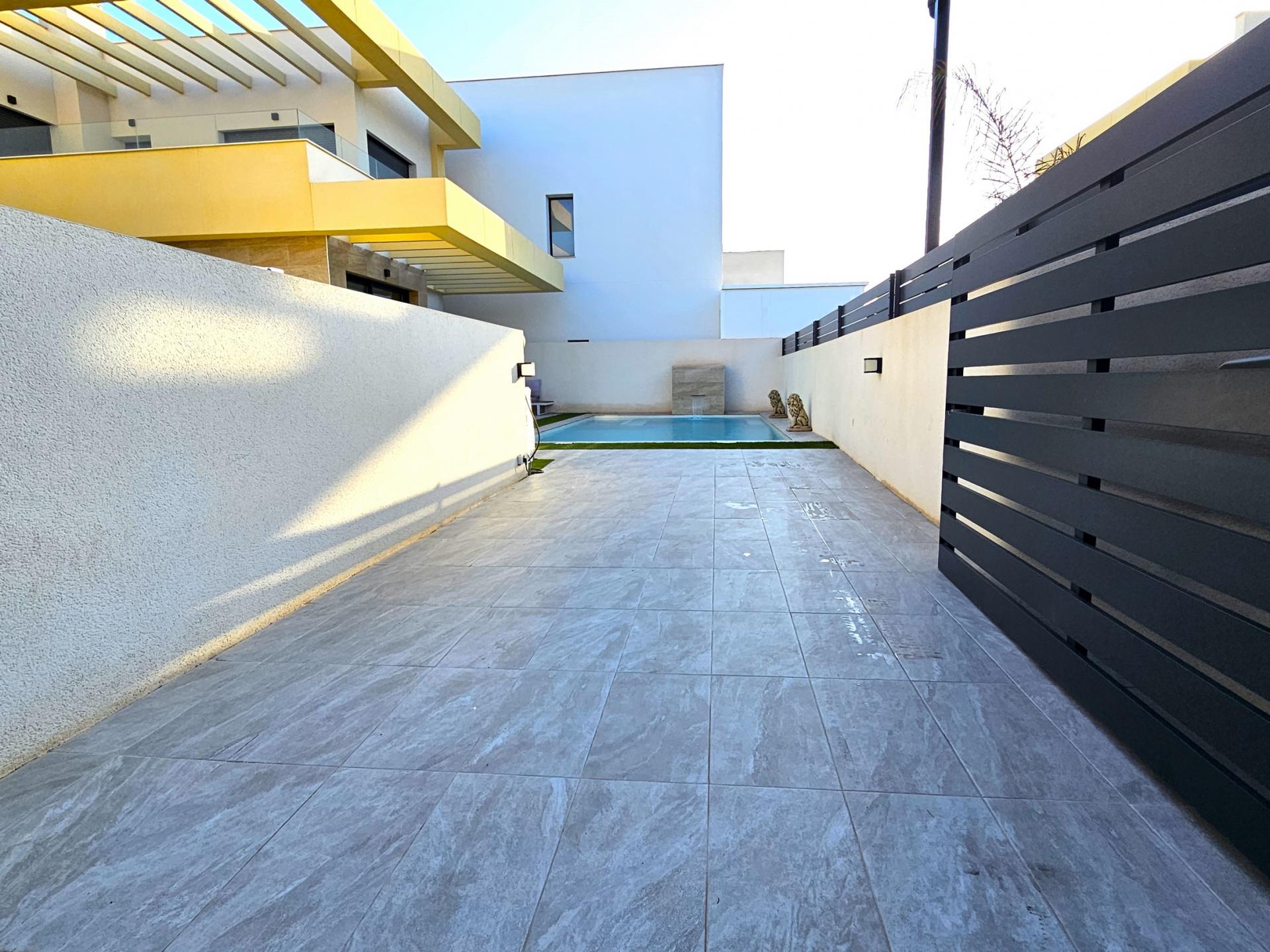 Villa moderna de 2023, completamente equipada con todo lujo de detalles, lista para entrar a vivir~~Villa completamente amueblada y equipada, lista para entrar a vivir con todas las características de alta tecnología con 3 dormitorios y 2 baños, 1 aseo preinstalado en el lavadero (donde colocamos el inodoro y la ducha si el cliente lo solicita).~~Construida en 2023 ubicada en Los Montesinos, La Herrada.~~Construidos 120m2~~Parcela 220m2~~Construida en 2023~~Parking privado~~A 15 minutos de la playa~~A 5 minutos del campo de golf~~A 30 minutos del aeropuerto de Alicante~