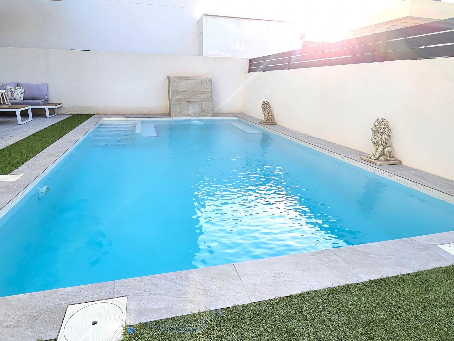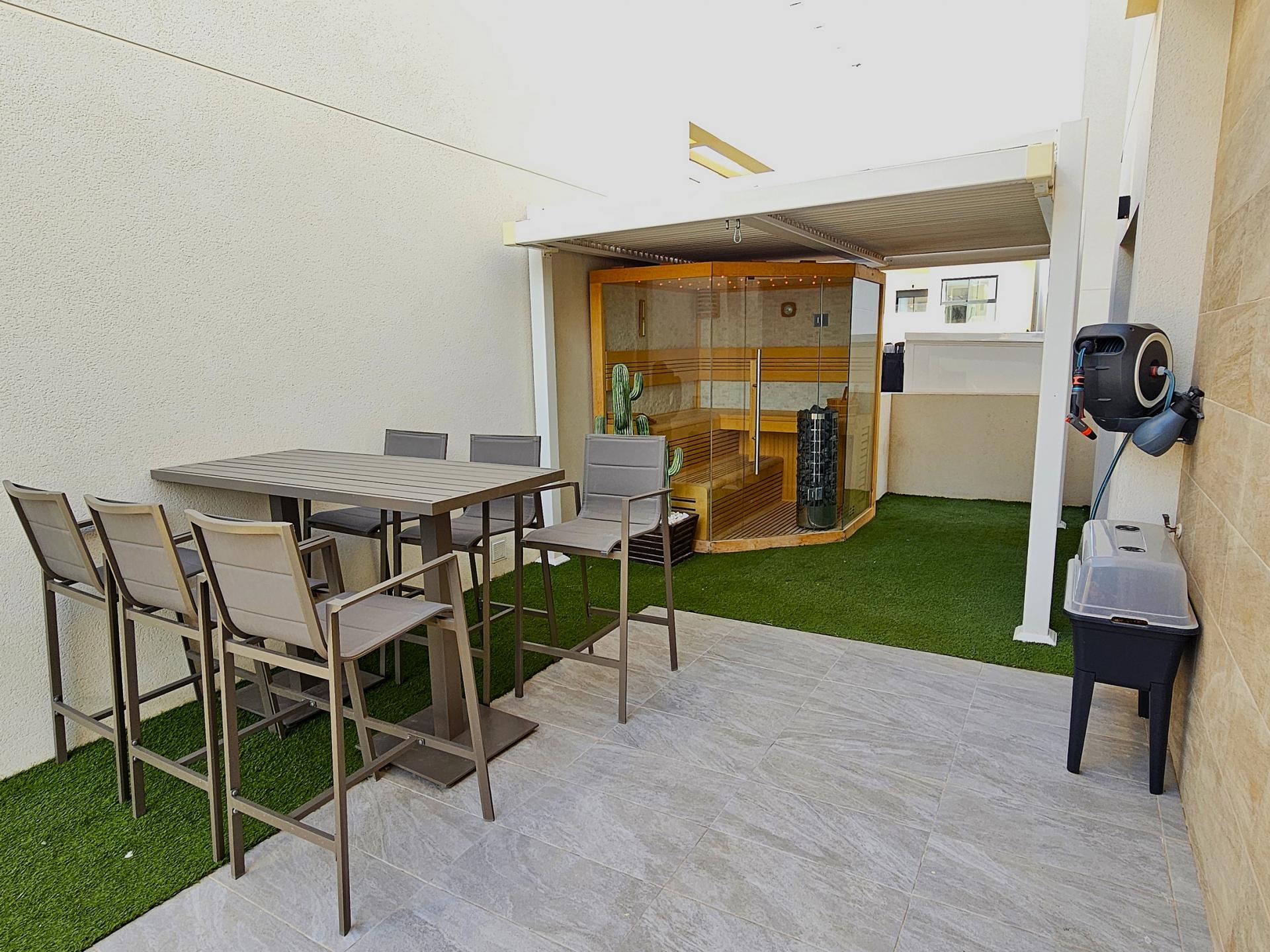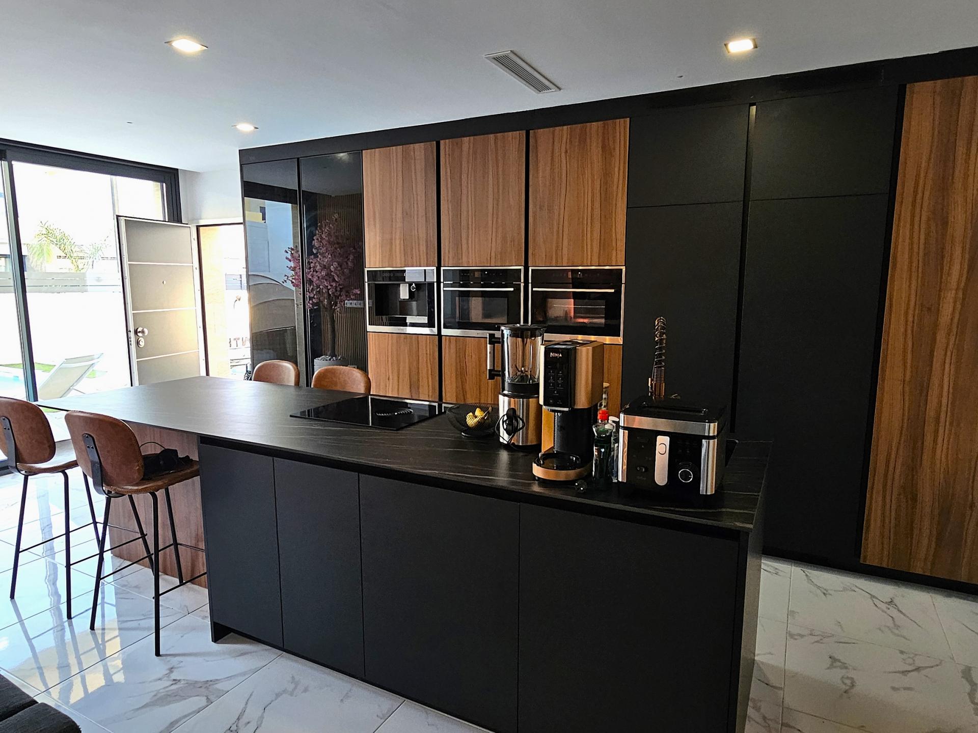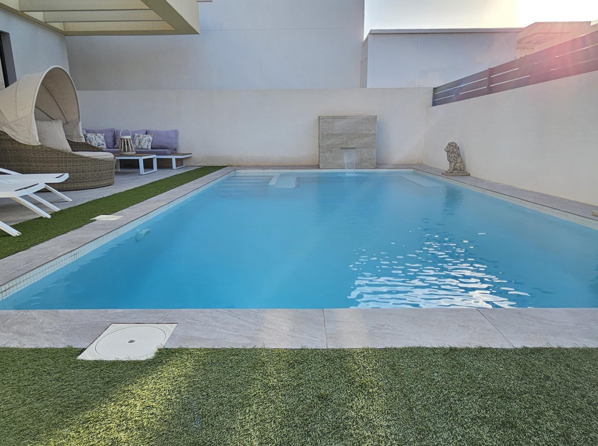 Villa moderna de 2023, completamente equipada con todo lujo de detalles, lista para entrar a vivir~~Villa completamente amueblada y equipada, lista para entrar a vivir con todas las características de alta tecnología con 3 dormitorios y 2 baños, 1 aseo preinstalado en el lavadero (donde colocamos el inodoro y la ducha si el cliente lo solicita).~~Construida en 2023 ubicada en Los Montesinos, La Herrada.~~Construidos 120m2~~Parcela 220m2~~Construida en 2023~~Parking privado~~A 15 minutos de la playa~~A 5 minutos del campo de golf~~A 30 minutos del aeropuerto de Alicante~